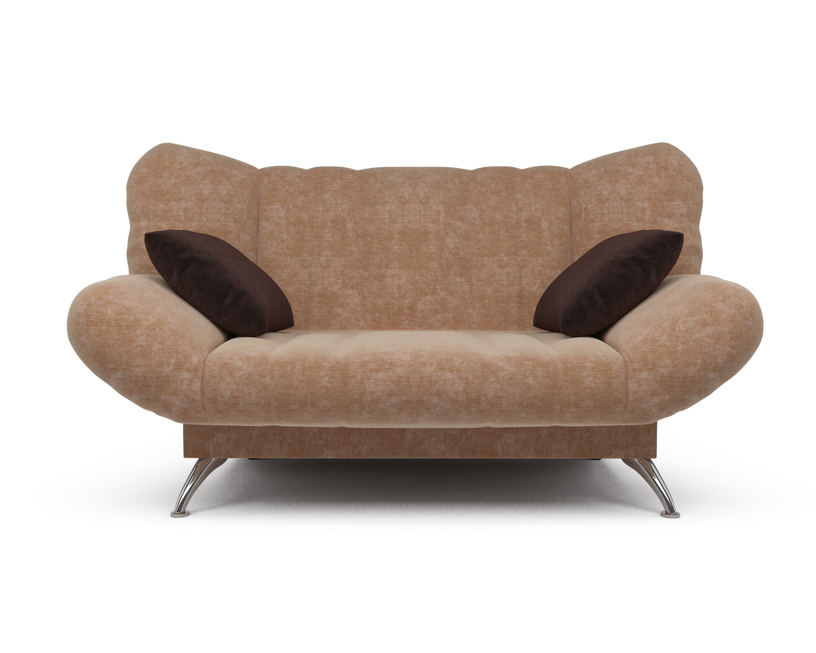 Высокие металлические ножки придают дивану современный и стильный вид, что делает его отличным акцентом в интерьере. Две декоративные подушки добавляют дополнительный комфорт и приятные акценты.