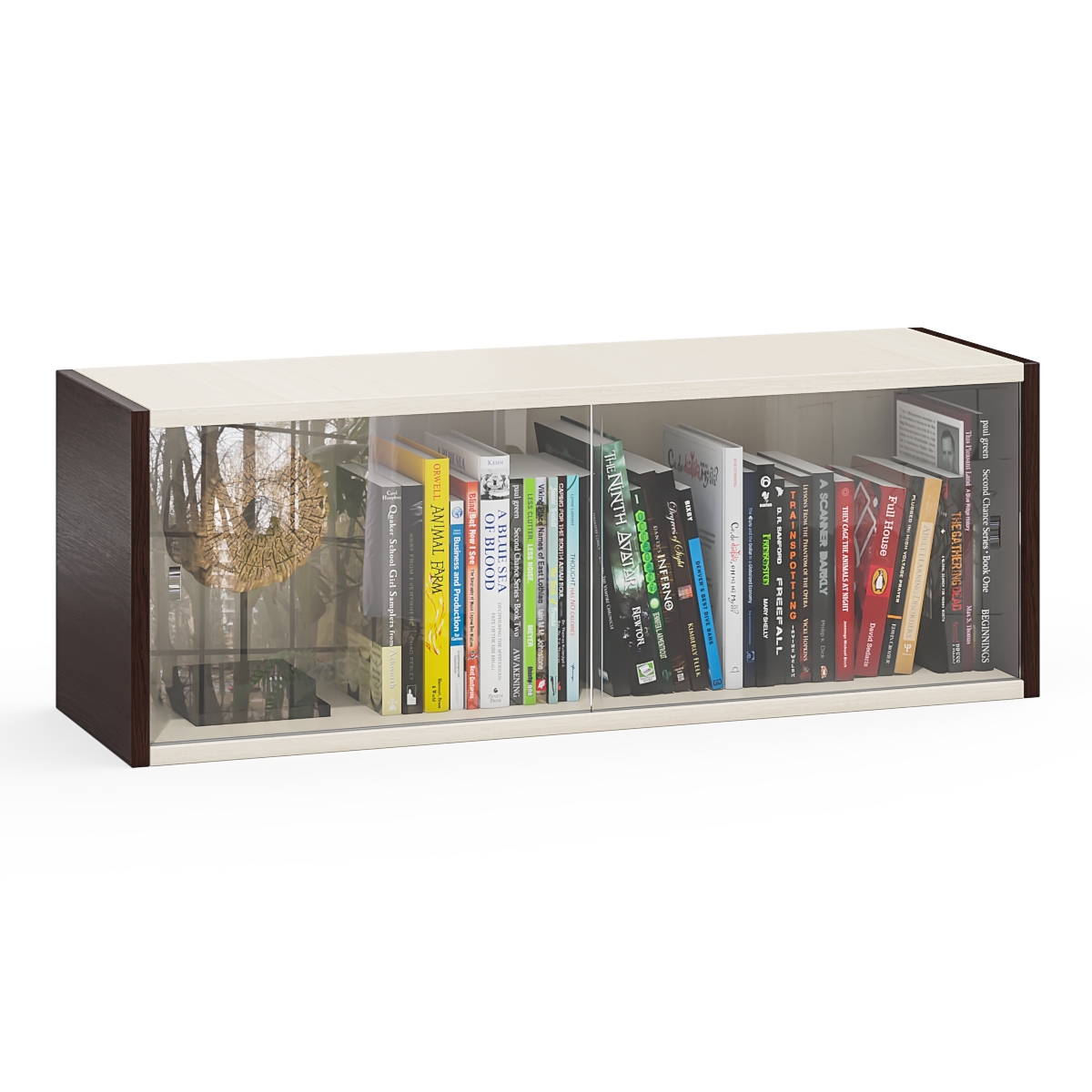 Полка книжная со стеклом МД-КН01 - незаменимый атрибут комфортной работы или приятного отдыха при ограниченном пространстве помещения. Навесная полка с учебниками или деловыми бумагами, удобно расположенная над столом, поможет Вам увеличить скорость выполнения работы. Хотите личный кабинет в маленьком офисе - разместите несколько полок друг над другом и получите полновесный шкаф, без «притеснения» коллег. А заняв совсем немного места над кроваткой малыша, полка станет ценным элементом уголка отдыха - мишутка, сказки, мамино фото, всё под рукой! Полка предусматривает и отличную защиту документов, книг или дисков от пыли, для этого на неё установлены две сдвижные стеклянные дверцы. Дверцы перемещаются по пластиковым полозьям, которые прочно вклеены в пропилы в горизонтальных деталях полки. Для надёжного крепления к стене, полка имеет металлические петли-ушки, гарантирующие удобство монтажа полки и безопасность эксплуатации. Палитра полки, включающая светлые, теплые и креативные цвета позволяет подобрать колер, гармонирующим с любым мебельным гарнитуром. Отличные эксплуатационные свойства полки гарантированы профессиональной работой с использованием качественной ламинированной ДСП. Санитарно-эпидемиологические сертификаты и сертификаты соответствия ГОСТу подтверждают гигиеническую безопасность и надёжность полки. Полка книжная со стеклом МД-КН01 - отличное повышение функциональности рабочих уголков в доме и офисе.