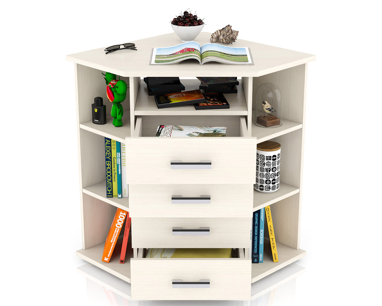 Отзывы о Столплит Комод угловой С-МД-К14П с открытыми полками Беленый дуб