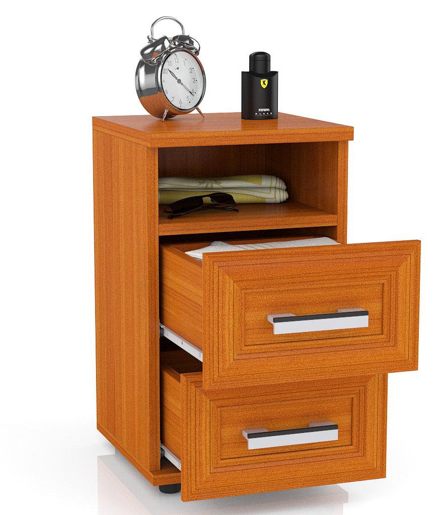 Тумба имеет верхнюю открытую нишу и два выкатных ящика. Роликовые направляющие обеспечивают лёгкий ход ящиков тумбочки. Небольшие, но очень вместительные ящики тумбочки будут надёжно хранить в идеальном порядке Ваши вещи. На тумбочке отлично можно разместить ночник, оставить книгу, телефон, фото семьи или ночной крем. Также тумба может найти своё место в прихожей, детской, кабинете, в гостиной или на балконе.