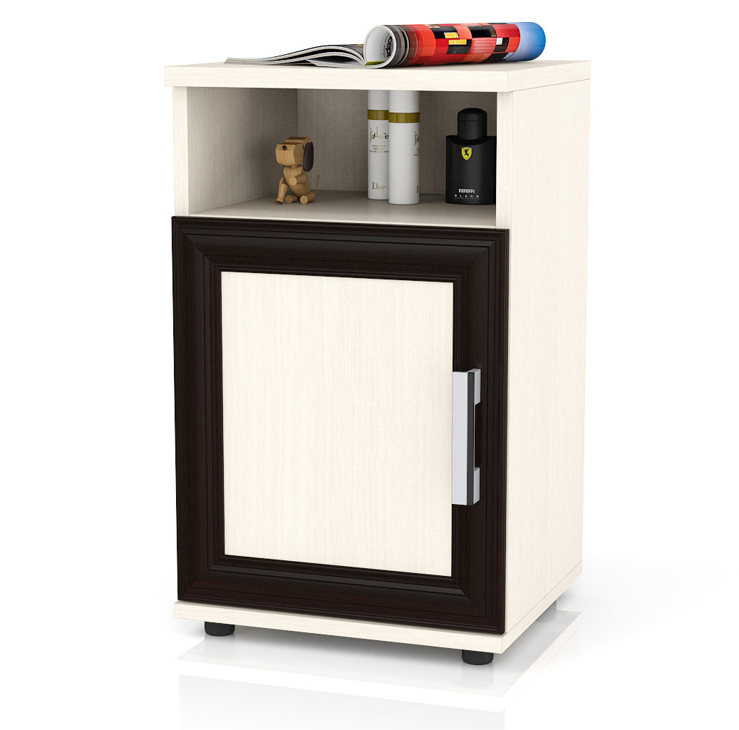 Тумба имеет открытую нишу и закрытую распашной дверкой нишу с полкой и будет надёжно хранить в идеальном порядке Ваши вещи. На тумбочке отлично можно разместить ночник, оставить книгу, телефон, фото семьи или ночной крем.