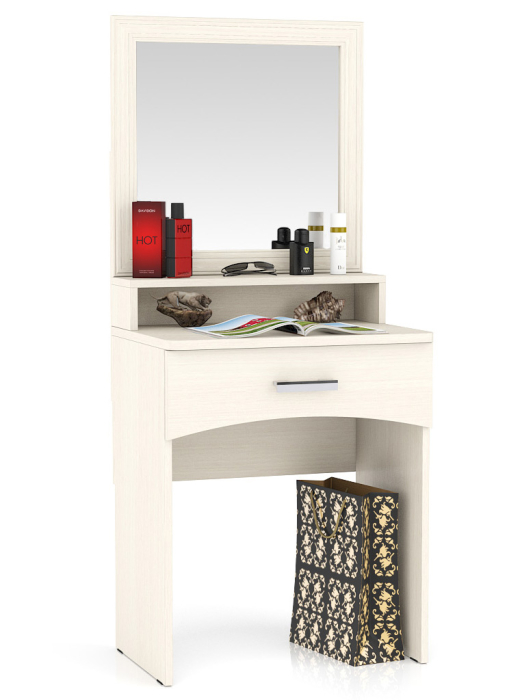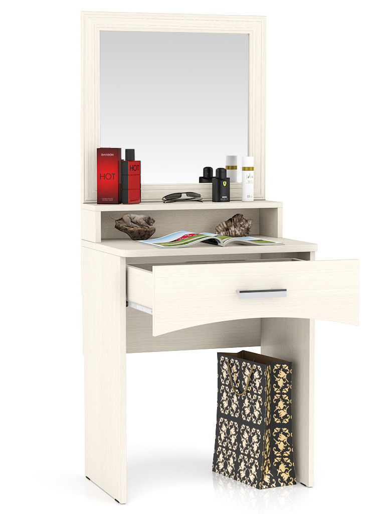 Столик туалетный с зеркалом Белла - очаровательный столик для милых дам. Удобный туалетный столик прекрасно впишется в интерьер Вашей спальни и станет Вашим верным другом каждый день. У столика вместительная столешница с полочкой, большое зеркало и выкатной ящик для всевозможных предметов косметики и женских секретиков. С таким столиком Вы с удовольствием будете проводить прекрасное время по поддержанию, сохранению и приумножению Вашей красоты. Столик выполнен и материалов высокого качества и будет служить Вам верой и правдой долгие годы. Ламинированная ДСП 16 мм. обрамлена кромкой ПВХ 2 мм. и 0,4 мм. В ящике использованы роликовые направляющие. Столик оборудован пластиковыми подпятниками, предохраняющими Ваше напольное покрытие от повреждения. Широкая цветовая гамма позволит выбрать столик максимально соответствующий палитре Вашей спальни. Поставляется стол в разобранном виде, хорошо упакованным с подробной инструкцией по сборке и комплектом сборочной фурнитуры. Столик туалетный с зеркалом Белла - прекрасный столик для прекрасных дам!