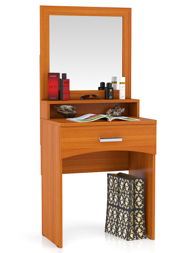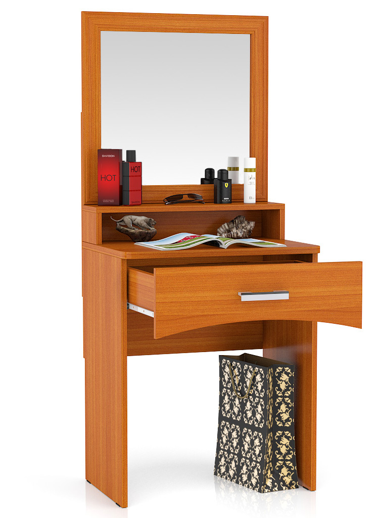 Столик туалетный с зеркалом Белла - очаровательный столик для милых дам. Удобный туалетный столик прекрасно впишется в интерьер Вашей спальни и станет Вашим верным другом каждый день. У столика вместительная столешница с полочкой, большое зеркало и выкатной ящик для всевозможных предметов косметики и женских секретиков. С таким столиком Вы с удовольствием будете проводить прекрасное время по поддержанию, сохранению и приумножению Вашей красоты. Столик выполнен и материалов высокого качества и будет служить Вам верой и правдой долгие годы. Ламинированная ДСП 16 мм. обрамлена кромкой ПВХ 2 мм. и 0,4 мм. В ящике использованы роликовые направляющие. Столик оборудован пластиковыми подпятниками, предохраняющими Ваше напольное покрытие от повреждения. Широкая цветовая гамма позволит выбрать столик максимально соответствующий палитре Вашей спальни. Поставляется стол в разобранном виде, хорошо упакованным с подробной инструкцией по сборке и комплектом сборочной фурнитуры. Столик туалетный с зеркалом Белла - прекрасный столик для прекрасных дам!