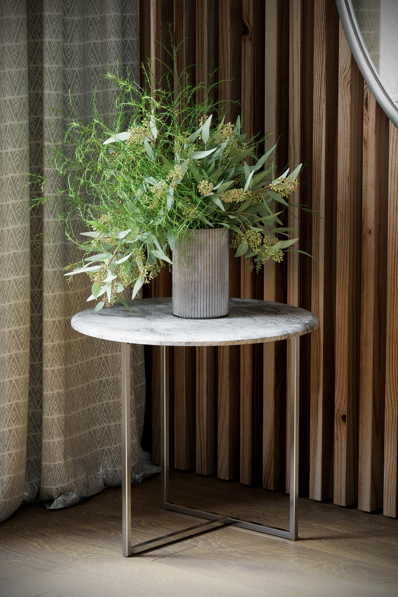 Журнальный столик "Альбано" выполнен в стиле лофт, сочетающем оригинальную текстуру декоративного покрытия столешницы и металлического подстолья в цвете черный или хром.