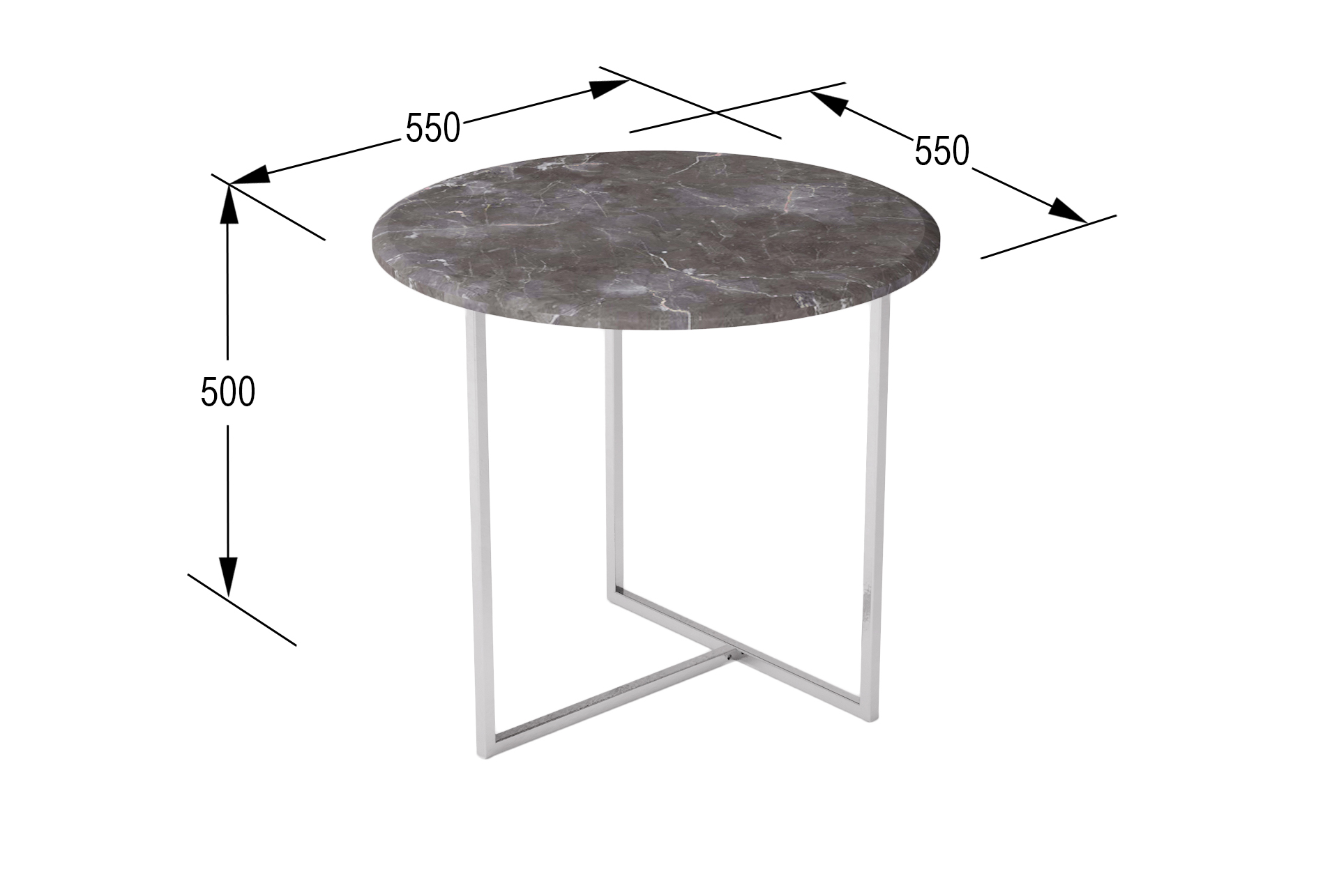 Габаритные размеры стола 550х550х500 мм.
