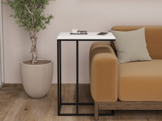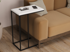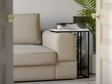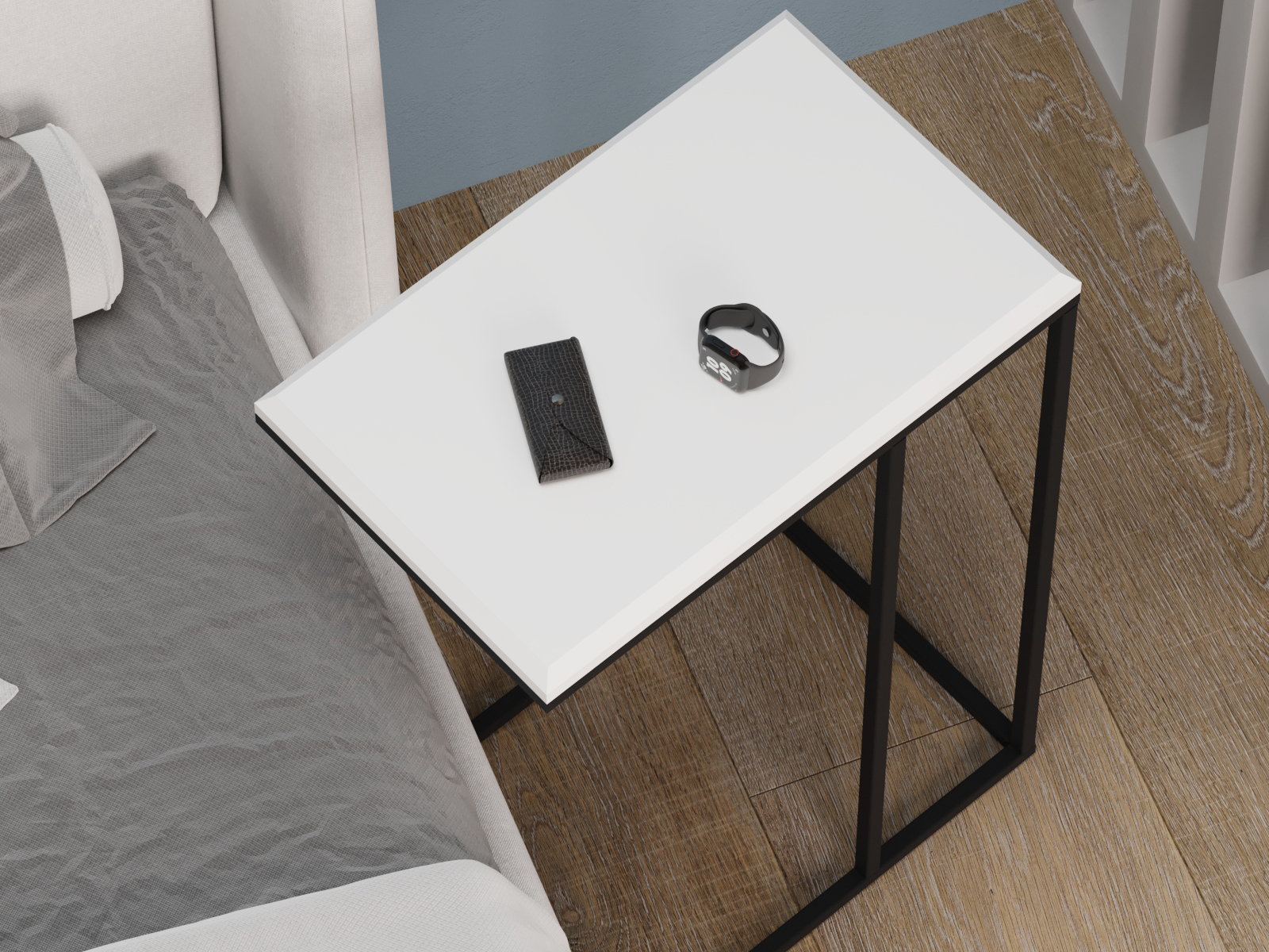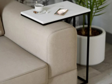 Конструкция столика позволяет расположить столешницу прямо над диваном или боковиной дивана, что достаточно удобно и функционально.