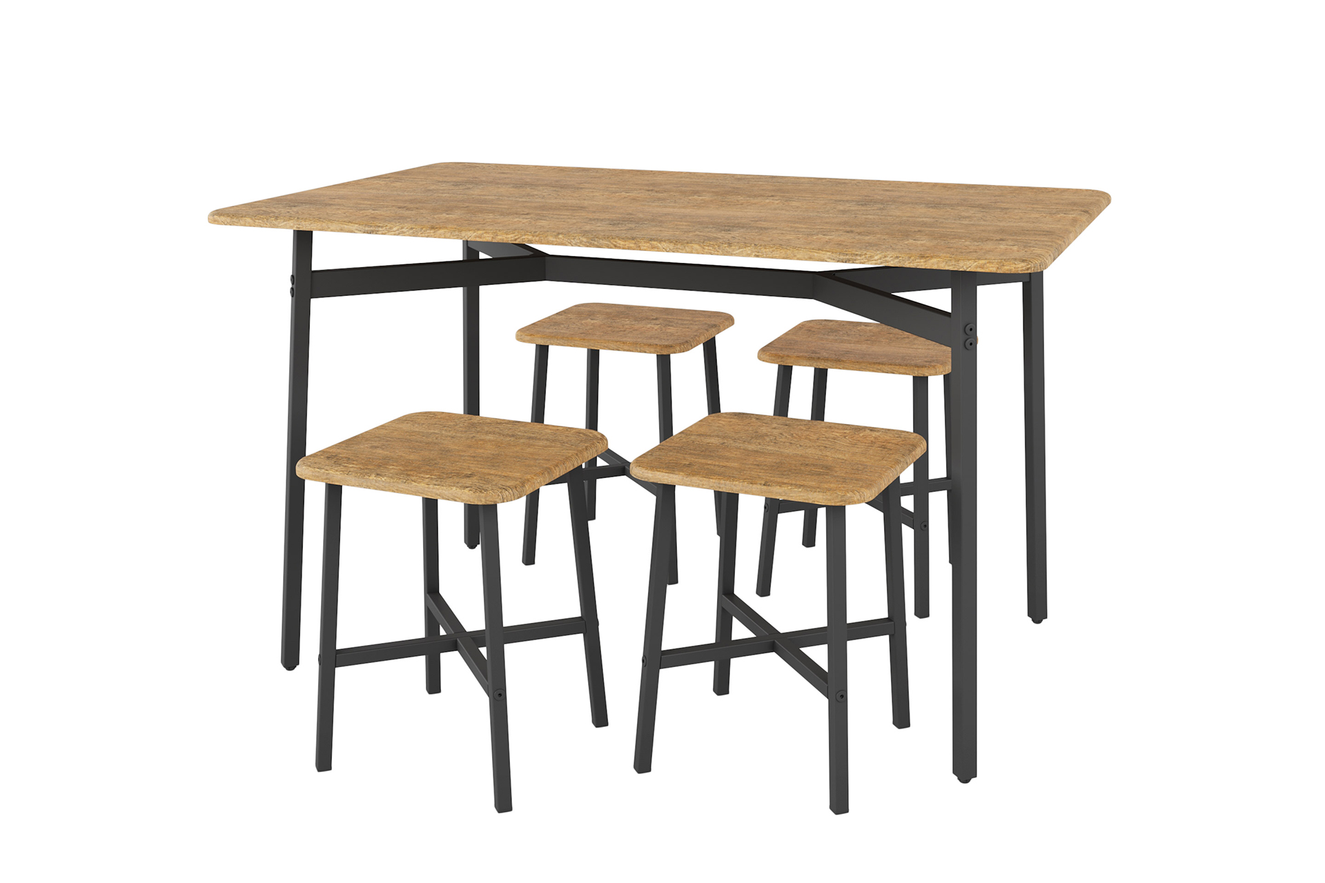 Обеденный стол «Кросс» отлично будет смотреться в комбинации с табуретами в этом же стиле.