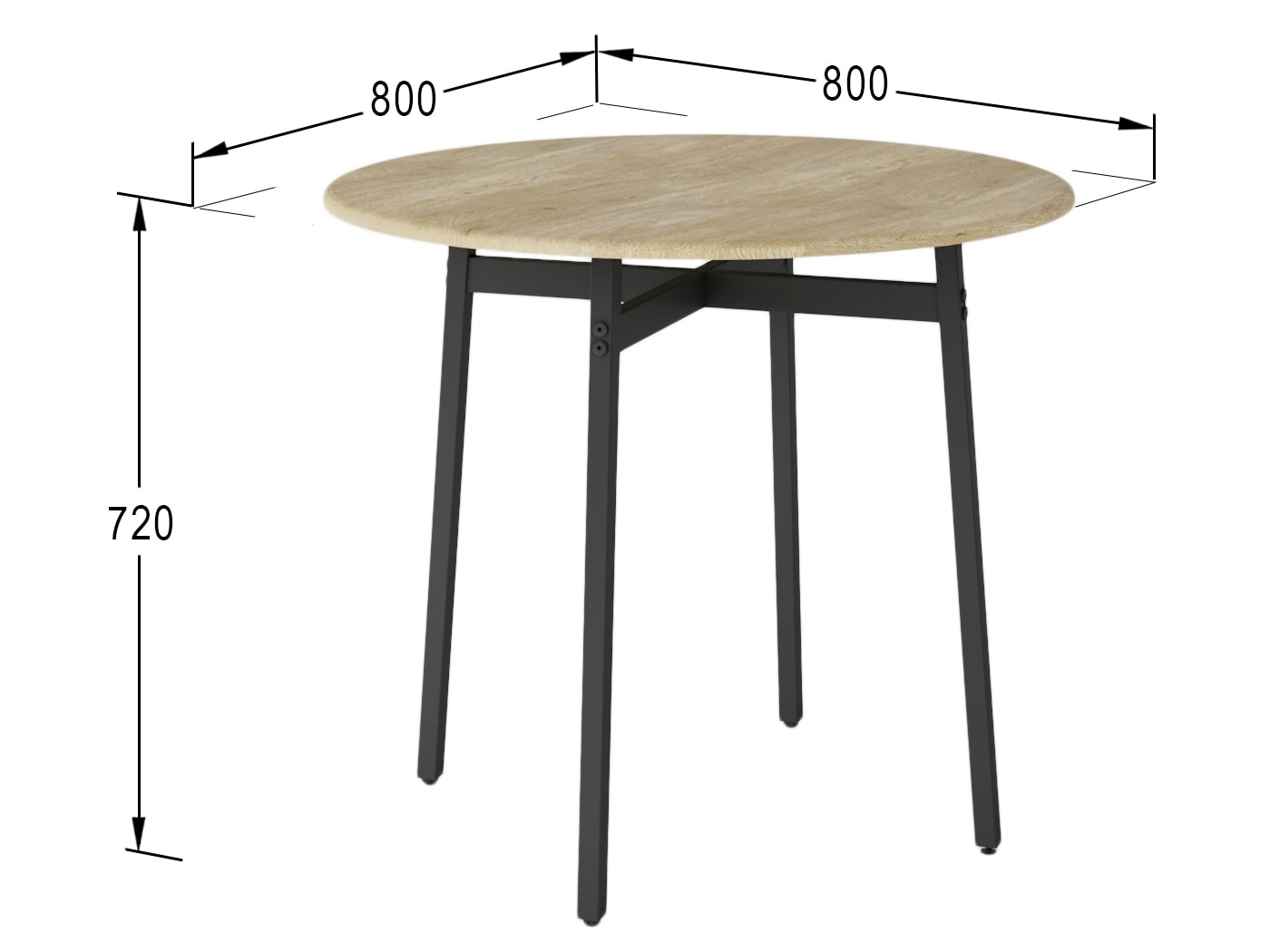 Габаритные размеры стола 800х800 мм, высота 720 мм.