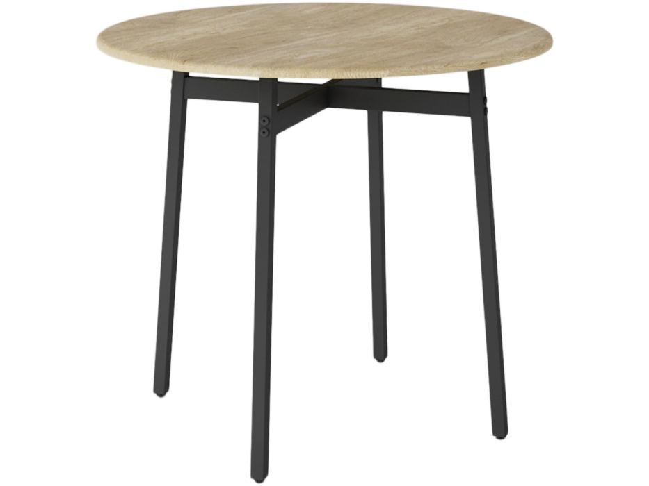 В тандеме с металлическими ножками стол прослужит долгие годы, а круглая столешница обеспечит безопасную обстановку в помещении.