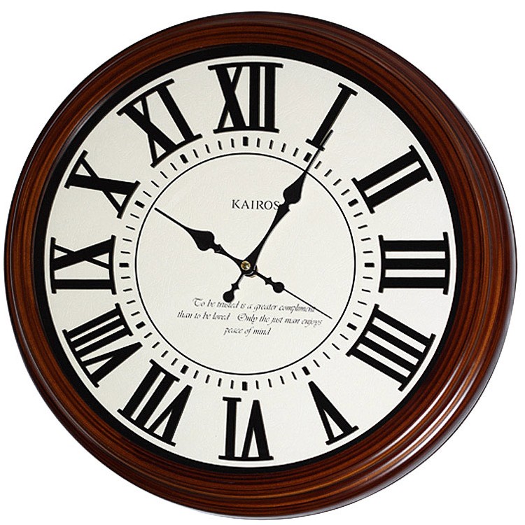 Настенные часы. Корпус выполнен из МДФ. Механизм плавного хода. Цифры римские, нанесены на стекло. Размеры: 440х440х30 Бренд: Kairos Материал: MDF.