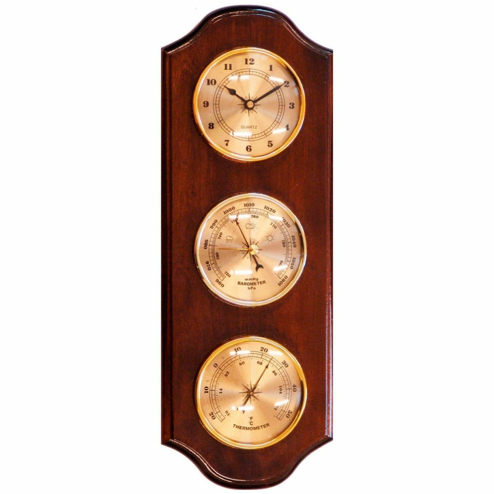 Описание часов н. Михаил Москвин М 03.66. Барометр, термометр и часы на одной планке. Основные характеристики: Вид механизма - кварцевые часы. Корпус: Габаритные размеры - Ширина 140 мм высота 380 мм глубина 30 мм., Корпус - деревянный. Дополнительные характеристики: Страна - Россия, Цвет циферблата - золотой, Цифры - арабские.