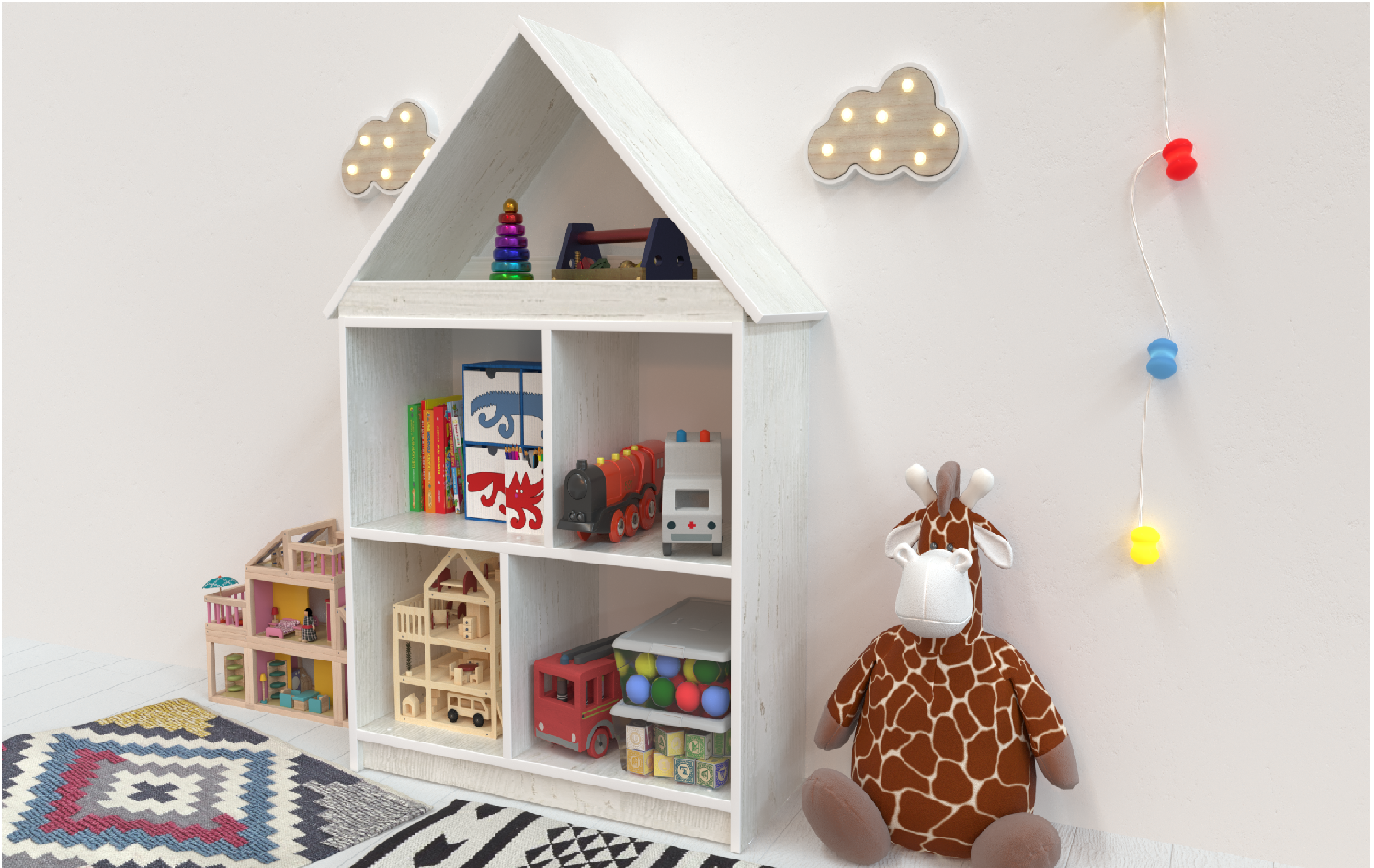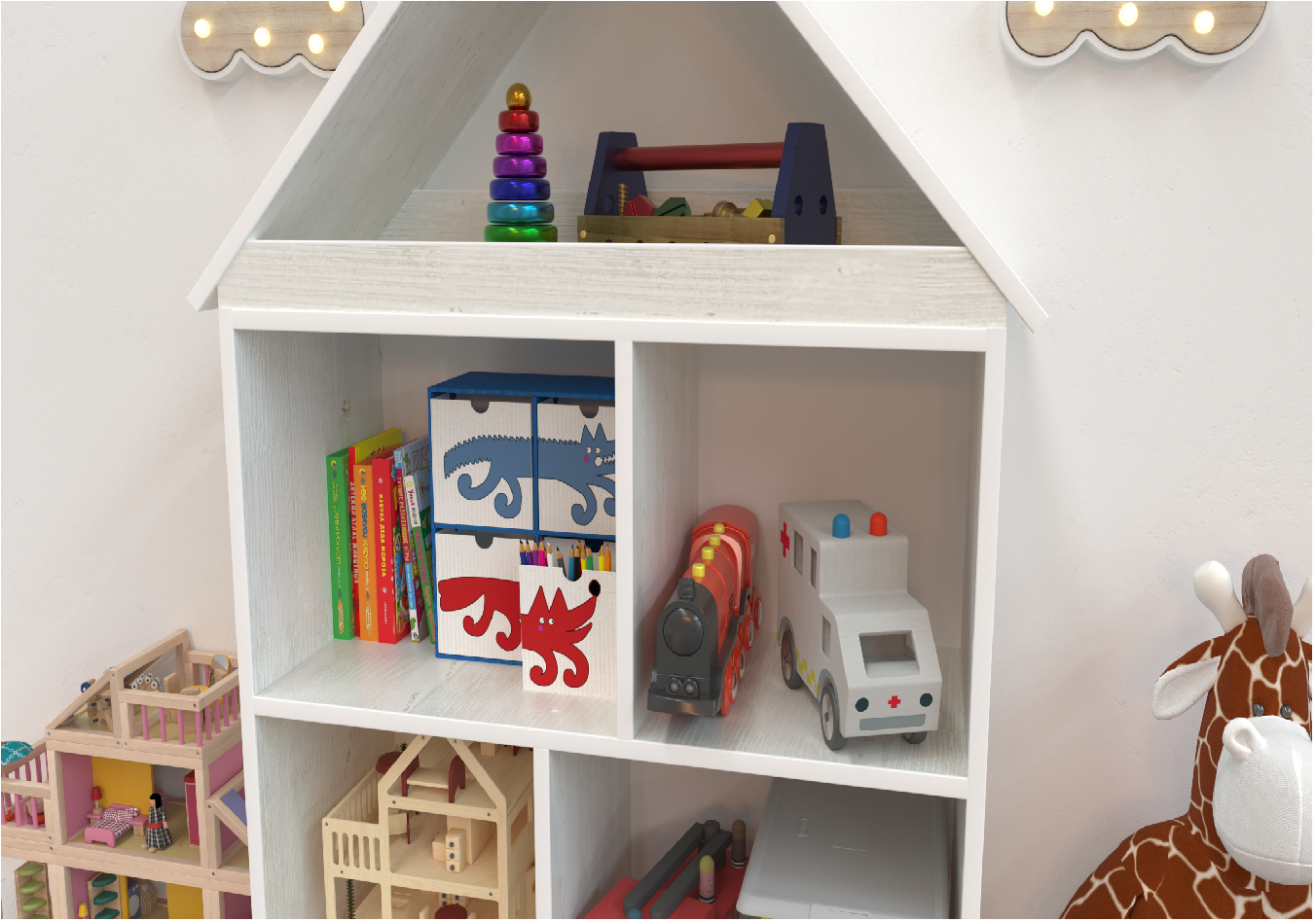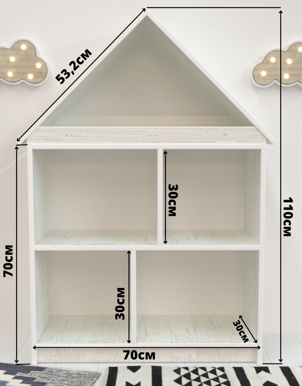 Домик очень понравился дочке, удобные, вместительные полочки. Отлично вписался в детскую