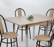 обеденная группа с ящиком состоит из стола раскладного в сложенном виде 60*80,в разложенном 80*120см.Стол оснащён выдвижным ящиком.Ножки Хромированные.В комплекте 4 Стула на металлокаркасе,сидение (наполнение поролон,обивка экокожа).