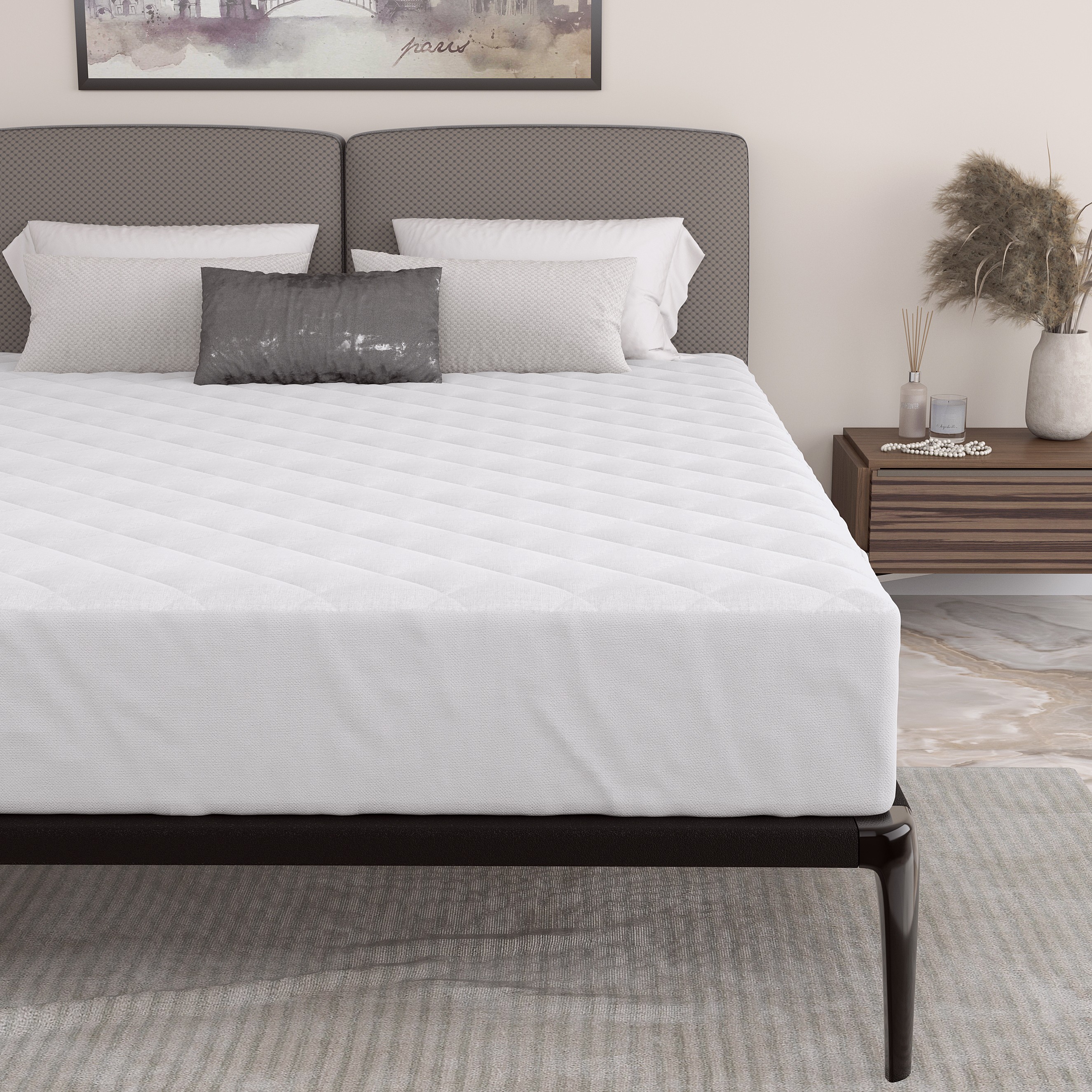 Наматрасник Нуволо поликоттон с бурлетом прекрасно защитит ваш матрас от механических повреждений и загрязнений, а, используемый в качестве наполнения стёжки скайфайбер, придаст спальному месту комфорт и уют. Поликоттон - смесовая ткань, которая состоит из хлопка и полиэстера примерно в равных пропорциях. Это делает данную ткань экологичной и натуральной, а полиэстер придает ей хорошую износоустойчивость. В данном наматраснике в качестве наполнения стёжки используется скайфайбер плотностью 100 гр. на м.кв. Скайфабйер – наполнитель на основе нетканого материала, который состоит из пустотелых полиэстеровых волокон, скрученных в форме пружин. За счёт этого обеспечивает высокую теплоизоляцию и не слёживается. Материал обеспечивает красивую стежку, возможность длительной эксплуатации, является экологически чистым и нетоксичным, не впитывает влагу и запахи, не поддерживает горение.