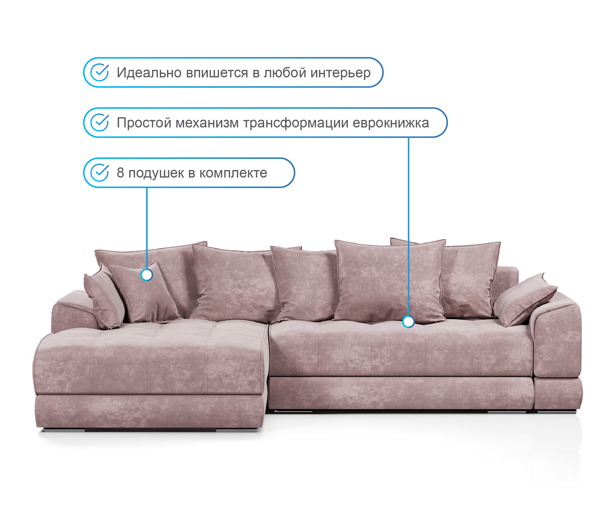 Отзывы о Столплит Диван-кровать угловой еврокнижка Модерн Nordkisa,велюр бежево-розовый