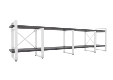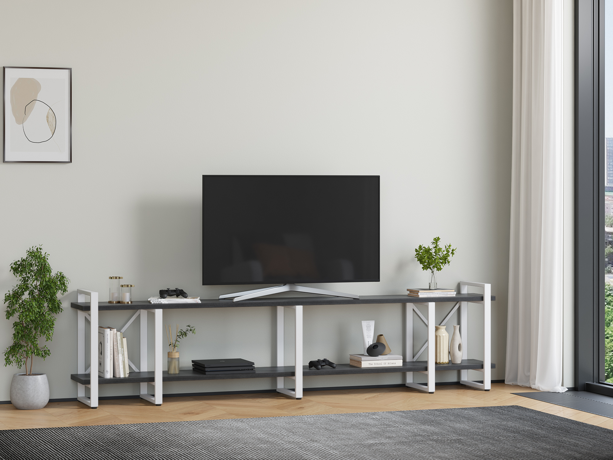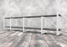 Тумба под ТВ Айсберг 240 в стиле лофт от Фабрики мебели 4 Сезона. Металлический каркас выполнен из металлического профиля 20х40 мм покрытого порошковой краской. Полки из ЛДСП 26 мм. Благодаря перекрестиям расположенным с задней части изделия конструкция надежная и без проблем выдержит нагрузку до 100 кг. Ножки имеют пластиковые опоры, регулируемые по высоте.