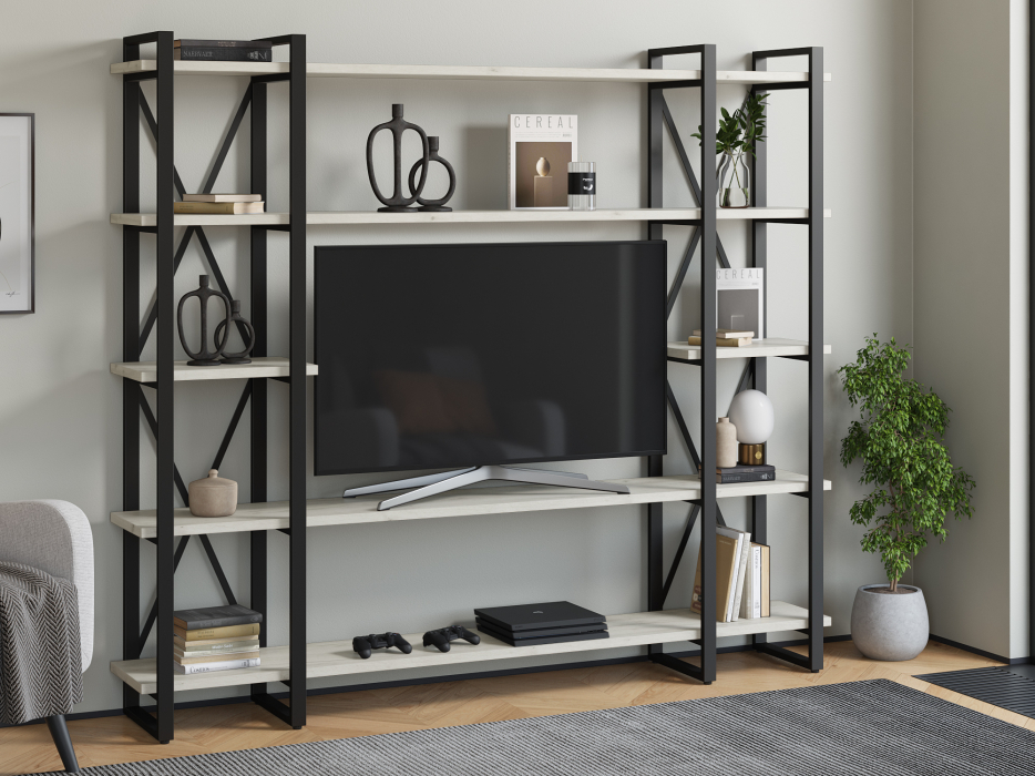 Стеллаж Айсберг Лофт 200х182-4 v4 черный (Дуб крафт белый)