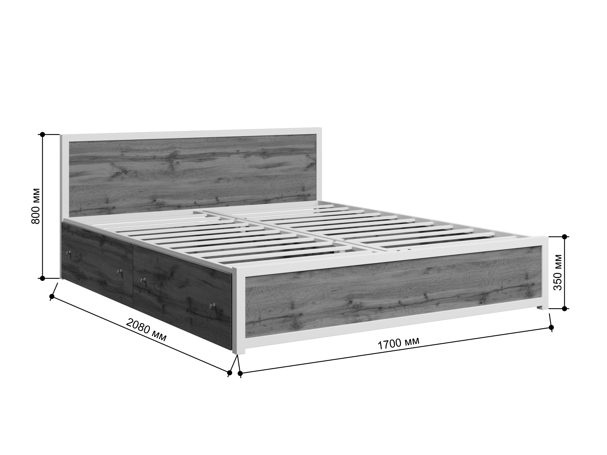 Кровать Титан Лофт 160 белый (Дуб крафт белый)