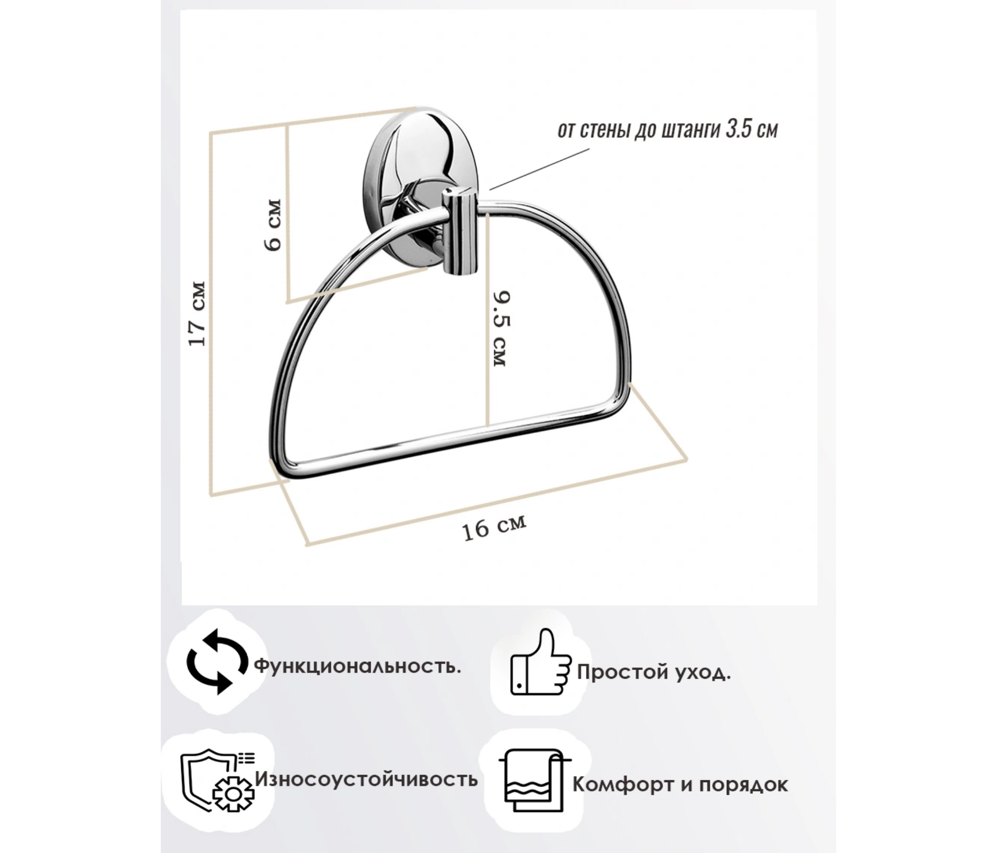 Изделие монтируется к стене при помощи надежного крепежа. Держатель не поддается коррозии, не деформируется и не отрывается от поверхности. Использованное влажное полотенце можно повесить обратно на держатель и аккуратно распрямить для высыхания и дальнейшего использования. Современный эргономичный дизайн держателя отлично сочетается с любыми аксессуарами в ванной комнате.