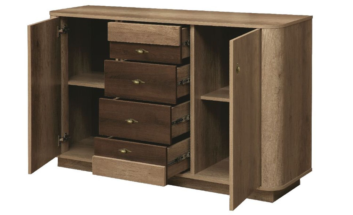 Комплектация - четыре выдвижных ящика, две распашные дверки, полки