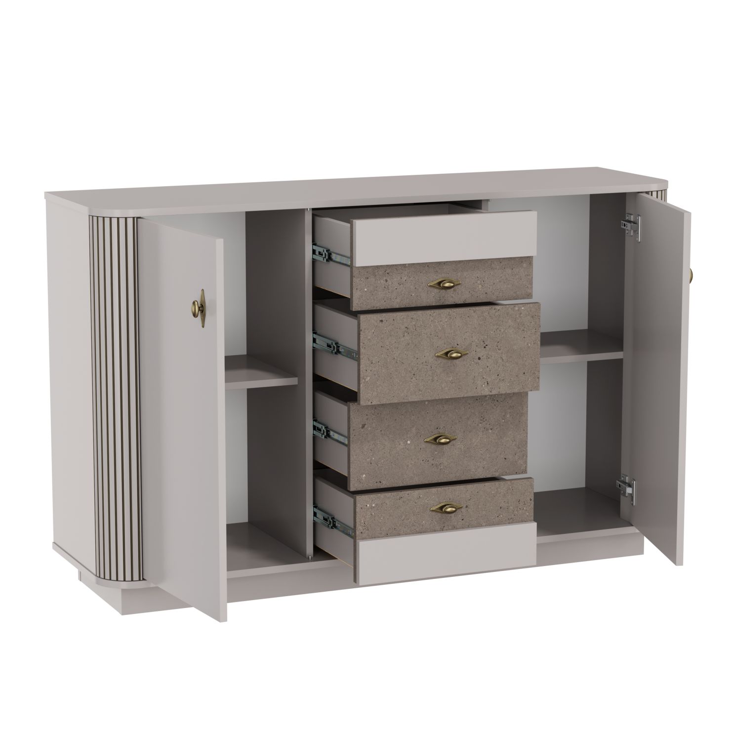 Комплектация - четыре выдвижных ящика, две распашные дверки, полки
