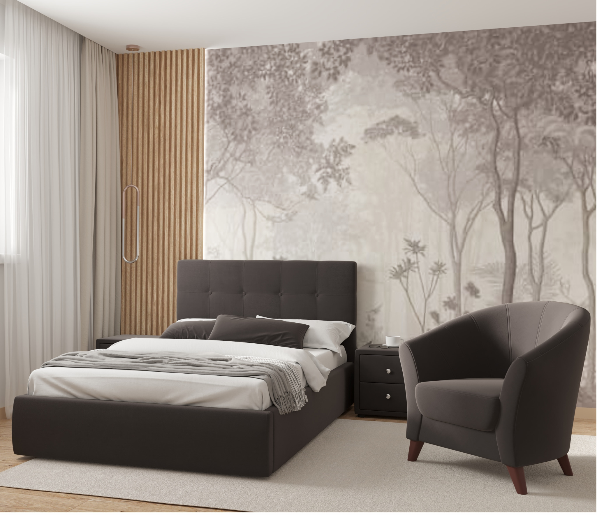 Кровать Селеста 120х200 выпускается в различных цветовых вариантах ткани и кожи как с ортопедическим основанием, так и с подъемным механизмом.