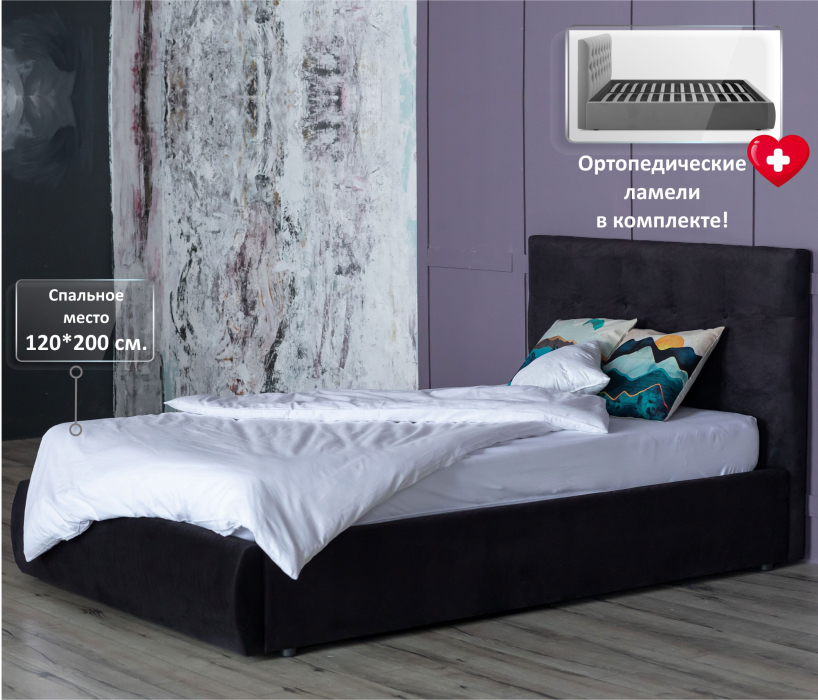 Отзывы о Столплит Мягкая кровать Selesta 1200 с ортопедическим основанием с матрасом ГОСТ Черный