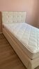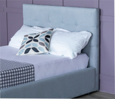 Кровать имеет рельефную мягкую спинку с неглубокими стяжками, которые придают особую изысканность изголовью. Рельефная спинка кровати декорирована декоративными пуговицами. Обивка изголовья и весь периметр кровати выполнен из мебельной ткани – велюр.