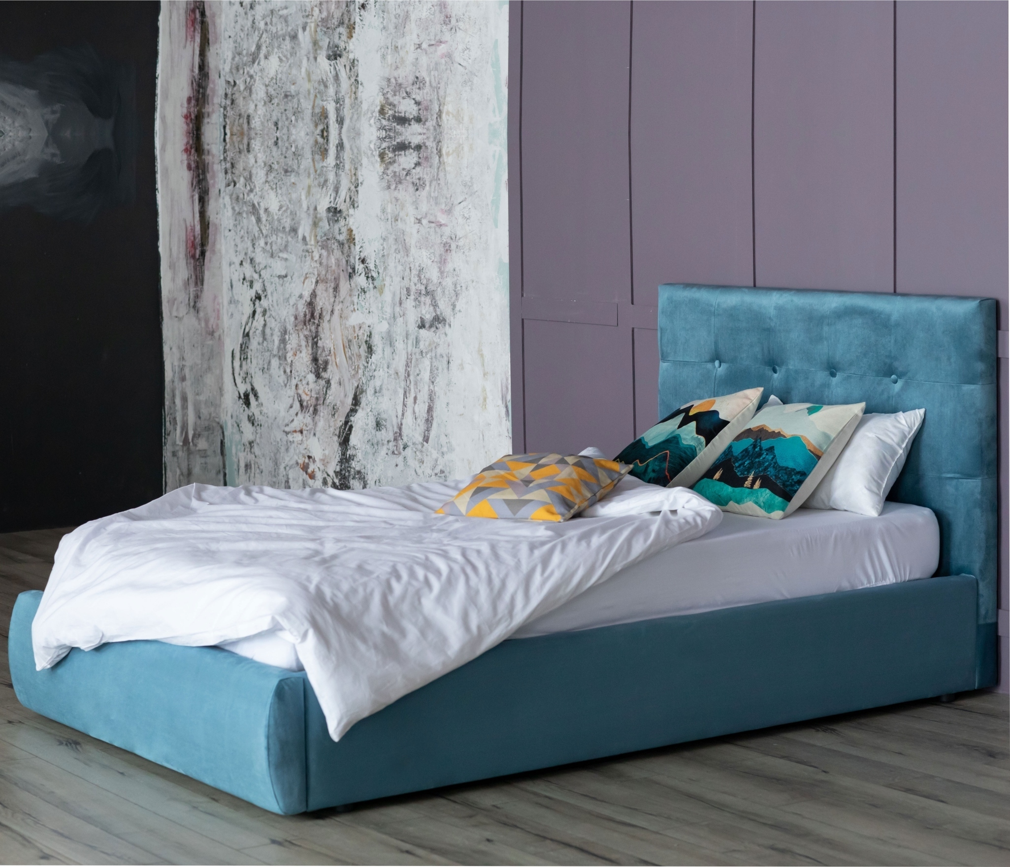 Мягкая кровать Selesta 1200 с ортопедическим основанием с матрасом АСТРА (Синий)