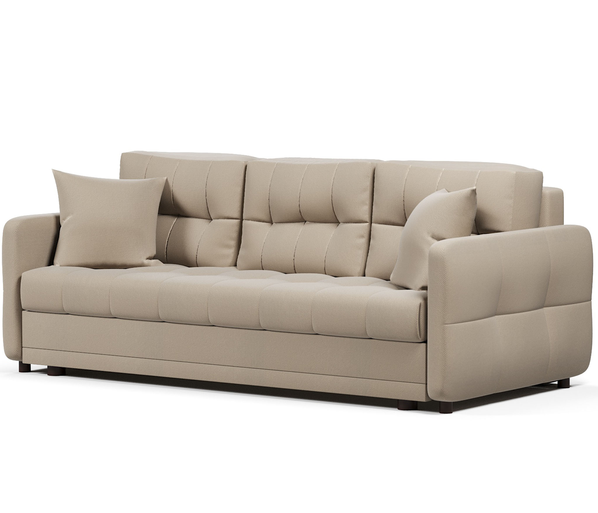 Диван с комфортным местом для сидения, удобно спать (одному можно даже не раскладывать). С обивки легко удаляется шерсть животных. Раскладывается легко, имеет вместительный ящик для белья, выглядит стильно.