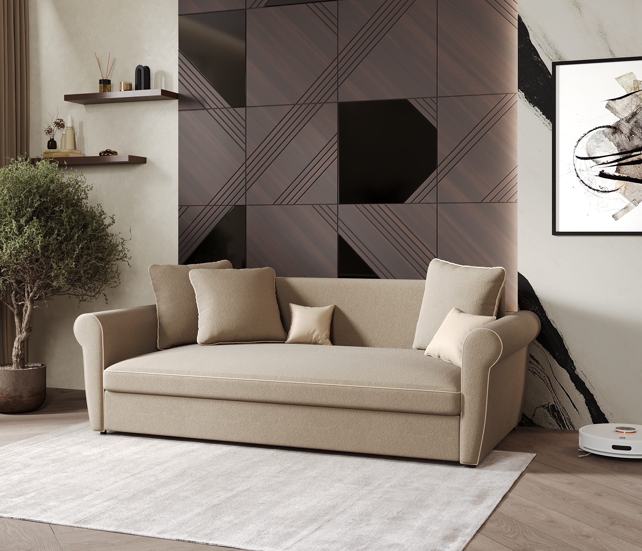 Привезли быстро, доставка и сборка сразу в один день. Диван очень красивый, лучше, чем на фото. Разбирается, собирается легко, все отлично.