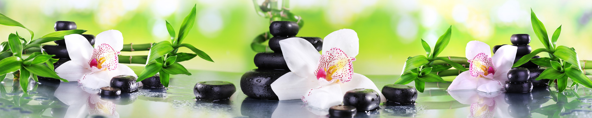 Кухонный фартук Орхидеяна камнях 2000x600x1.5 мм глянец Код I0000247124