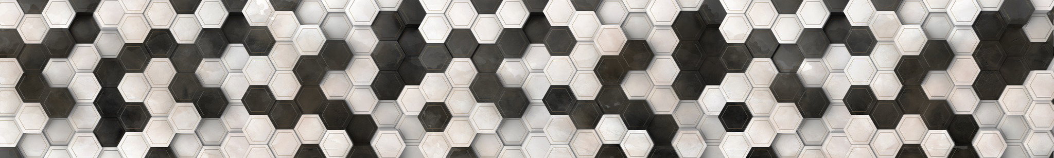 Кухонный фартук Соты черное&белое 3000x600x1.5 мм глянец Код I0000247129