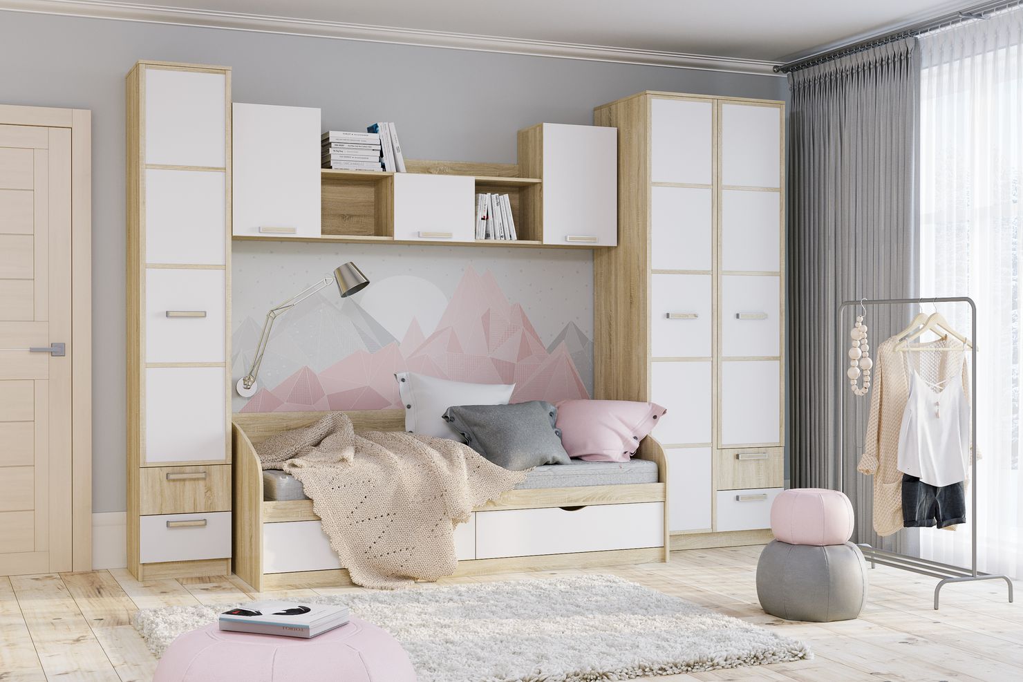 Кровать снабжена вместительными ящиками, в которых можно хранить бельё.