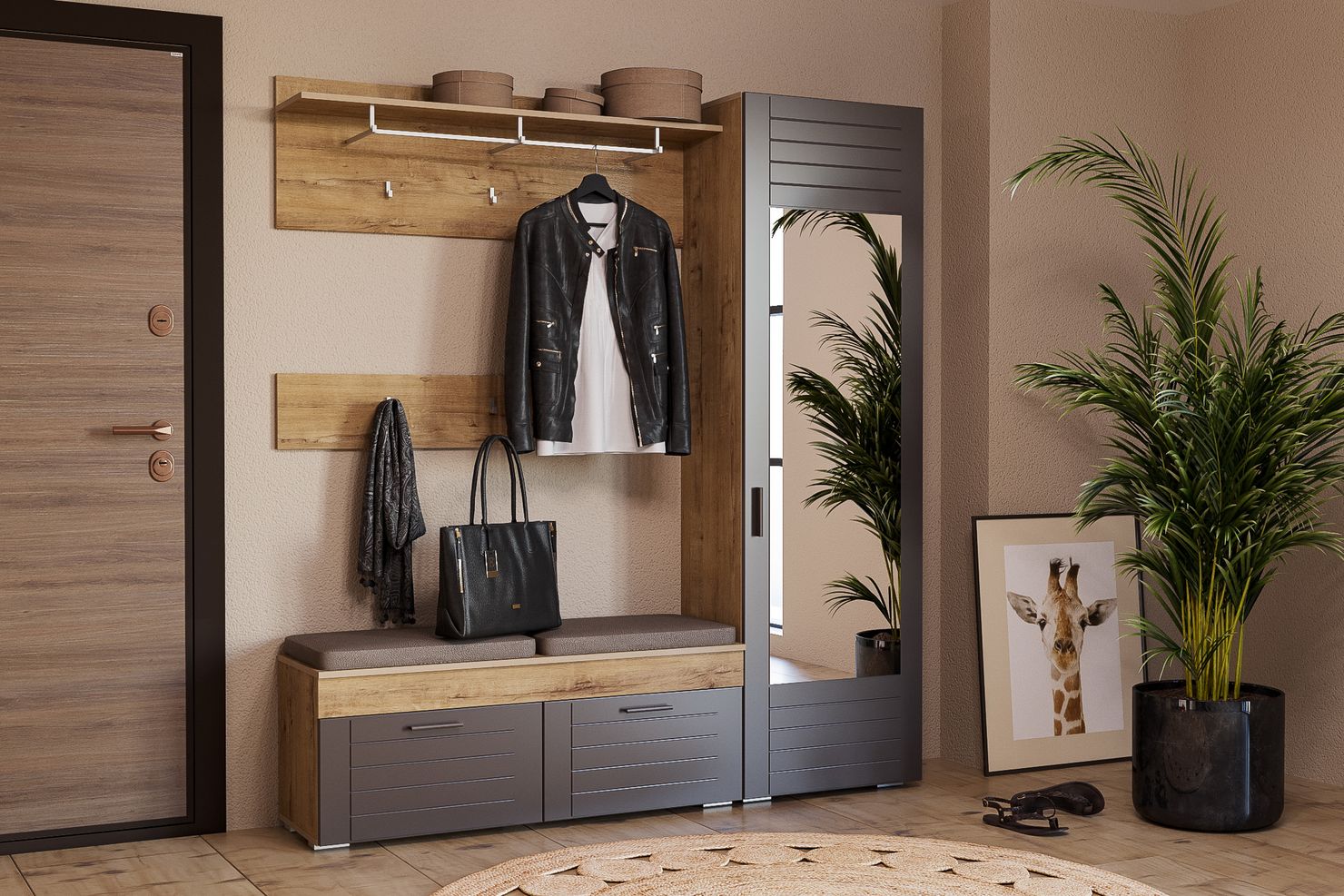 Вешалка подойдет для небольшой прихожей.