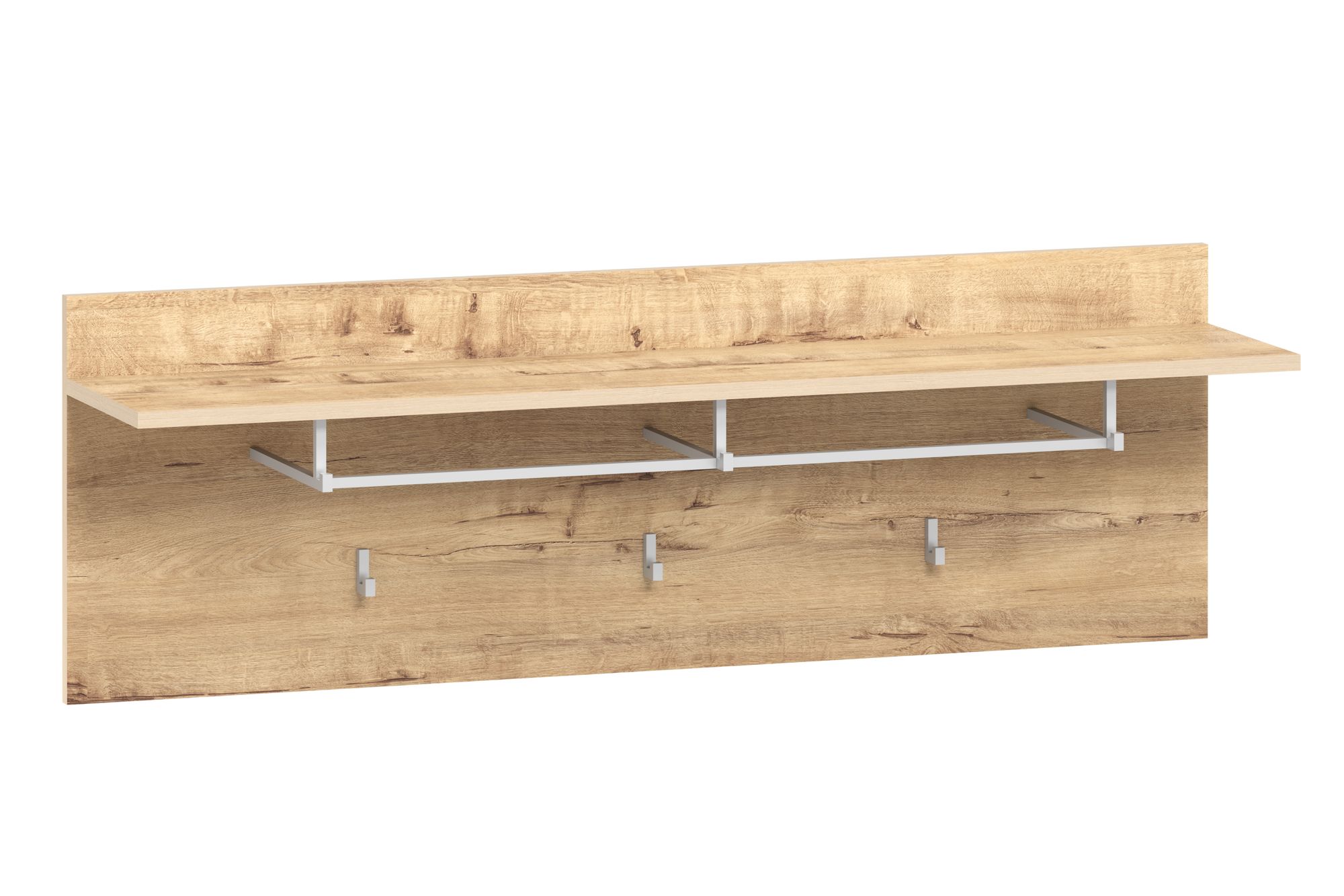Навесная вешалка для прихожей с тремя крючками и шляпной полкой.