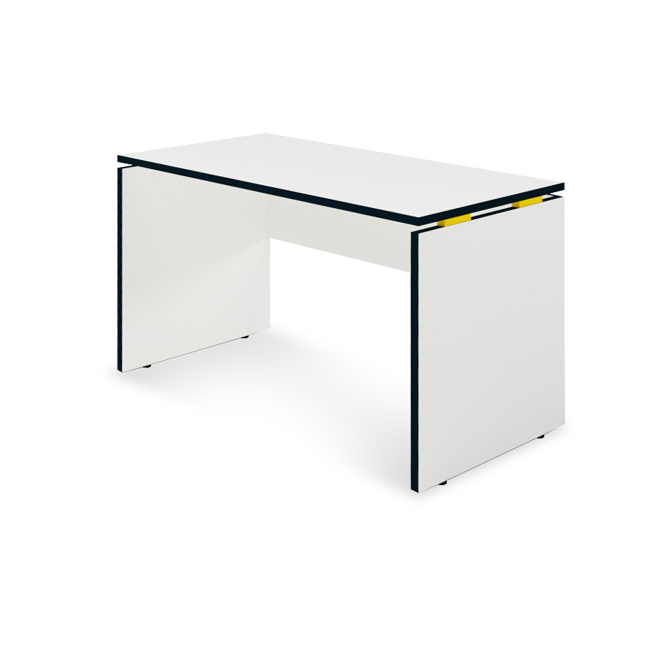 Проставки под столешницей выполнены из натурального дуба, что говорит об их выносливости и долговечности. Их можно оформить в белом, черном, синем, красном или желтом цвете, что добавит яркие акценты и создаст располагающую рабочую атмосферу, а кромку сделать контрастной или под цвет стола.