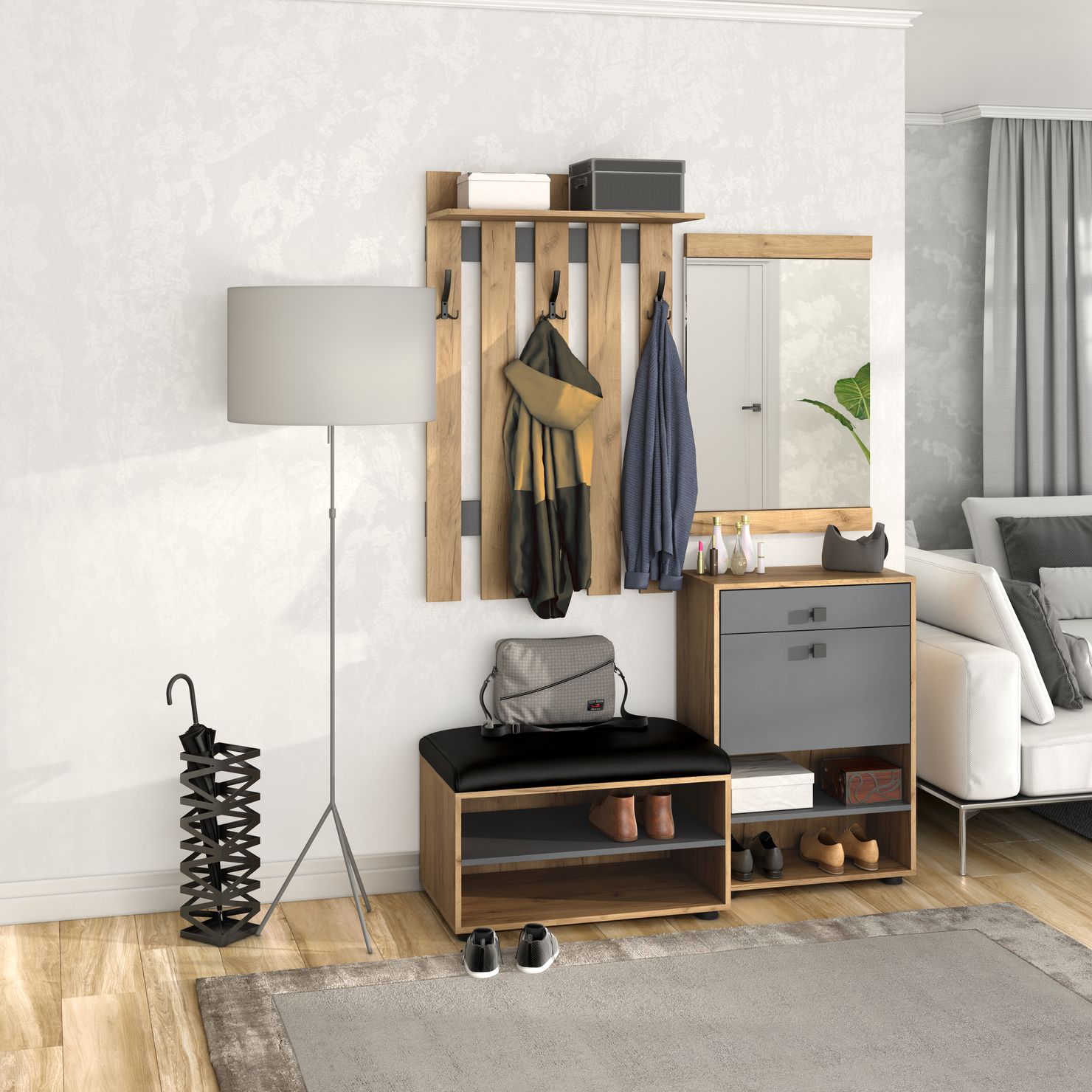 Мини Лайт МЛ-8 Обувница (Дуб крафт/серый)