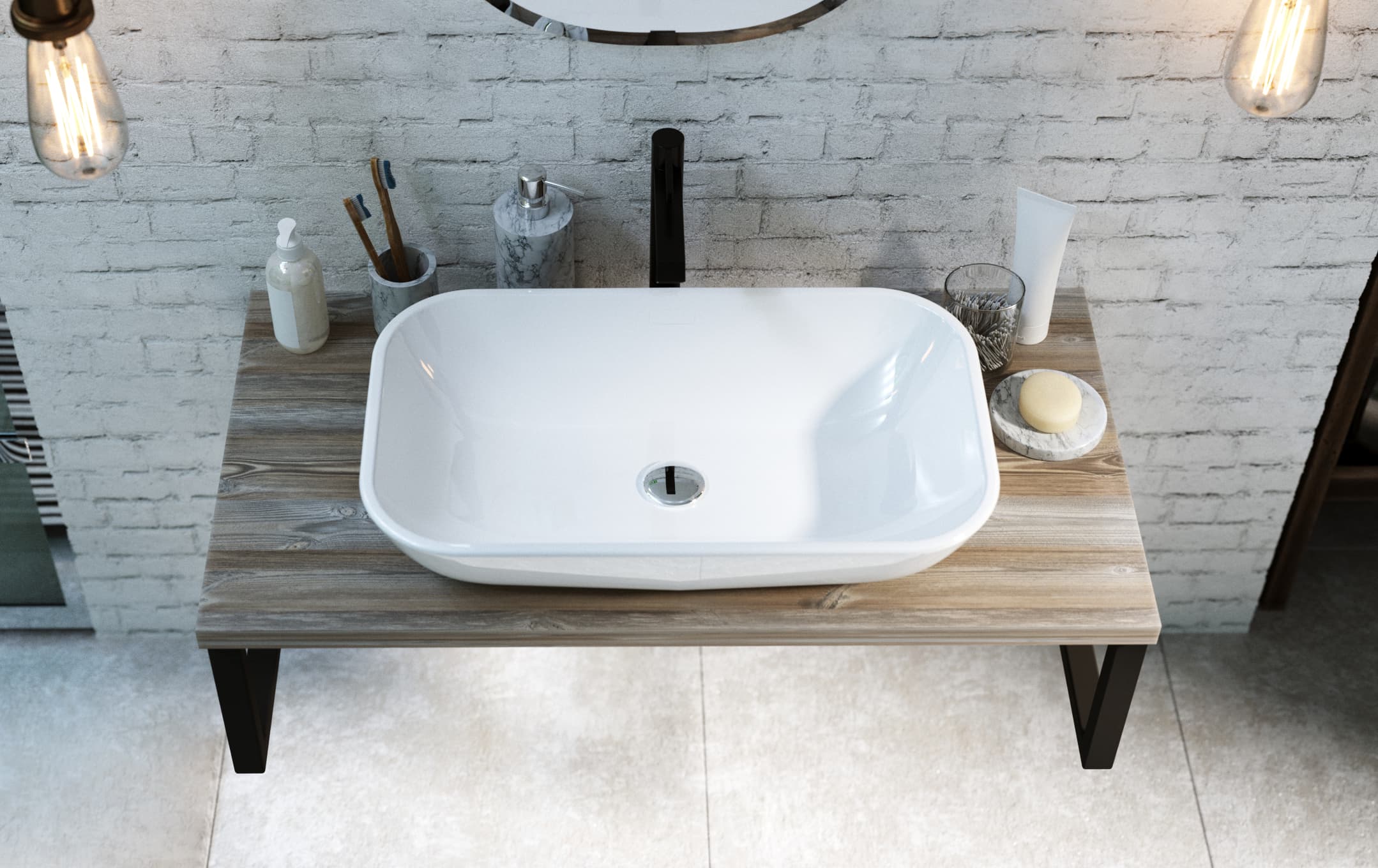 Столешница 1Marka GRUNGE LOFT 100 дополнена металлическими кронштейнами, выполняющими роль рейлингов. Лаконичная, полностью отвечающая всем эстетическим и функциональным потребностям современных ванных комнат, она делает их стильными и практичными.