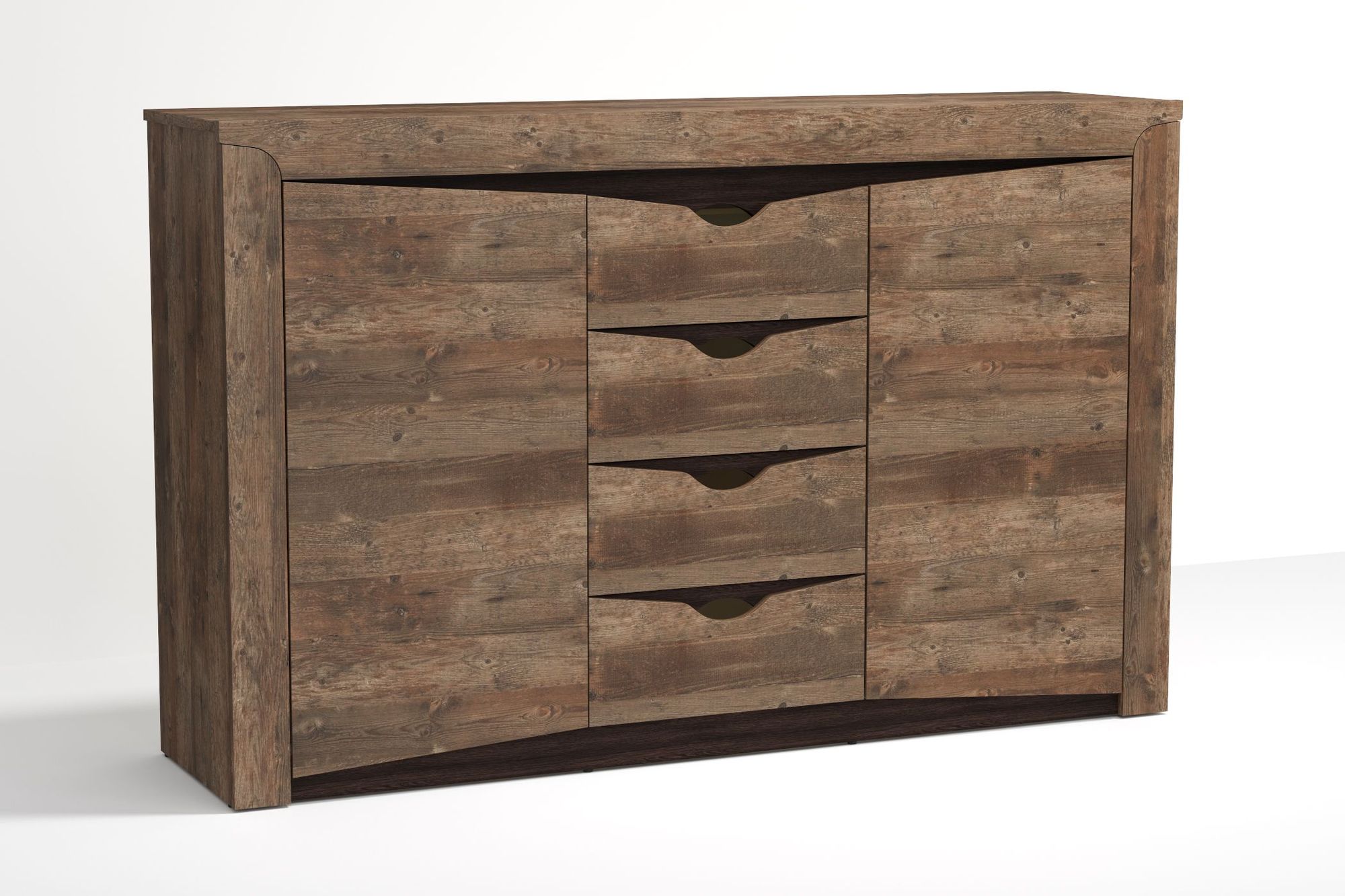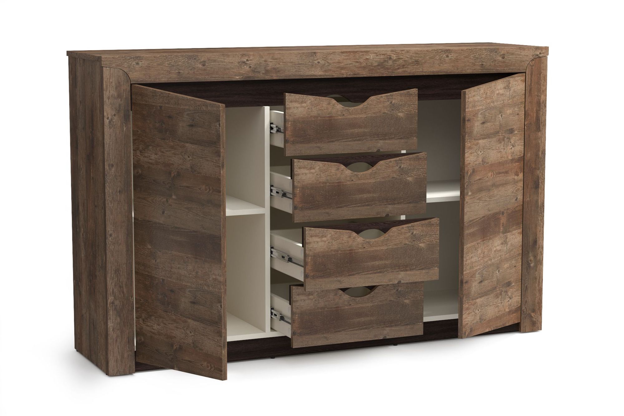 Комплектация - четыре выдвижных ящика, две распашные дверцы, полки