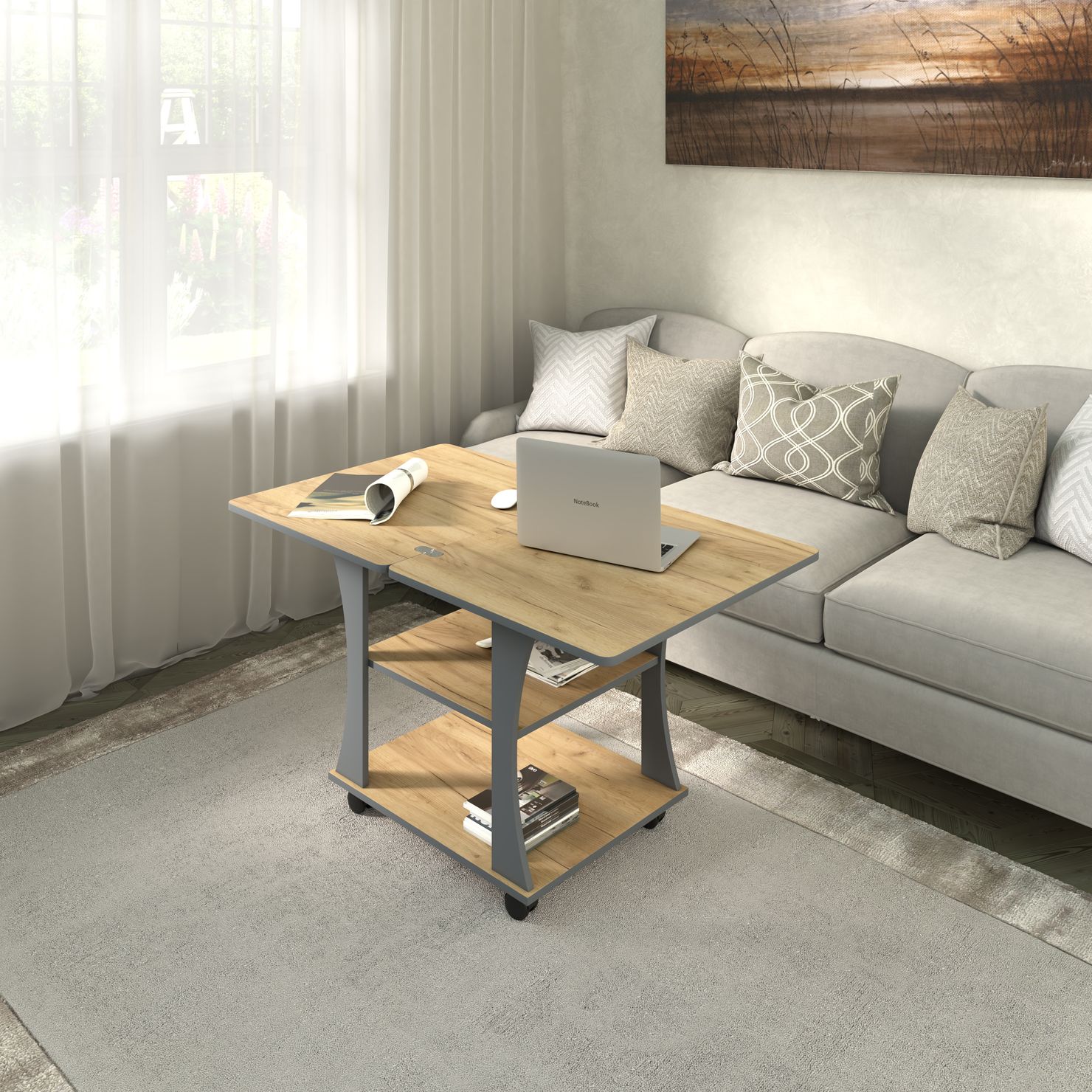 Стол оснащен колесиками для легкого и удобного перемещения.