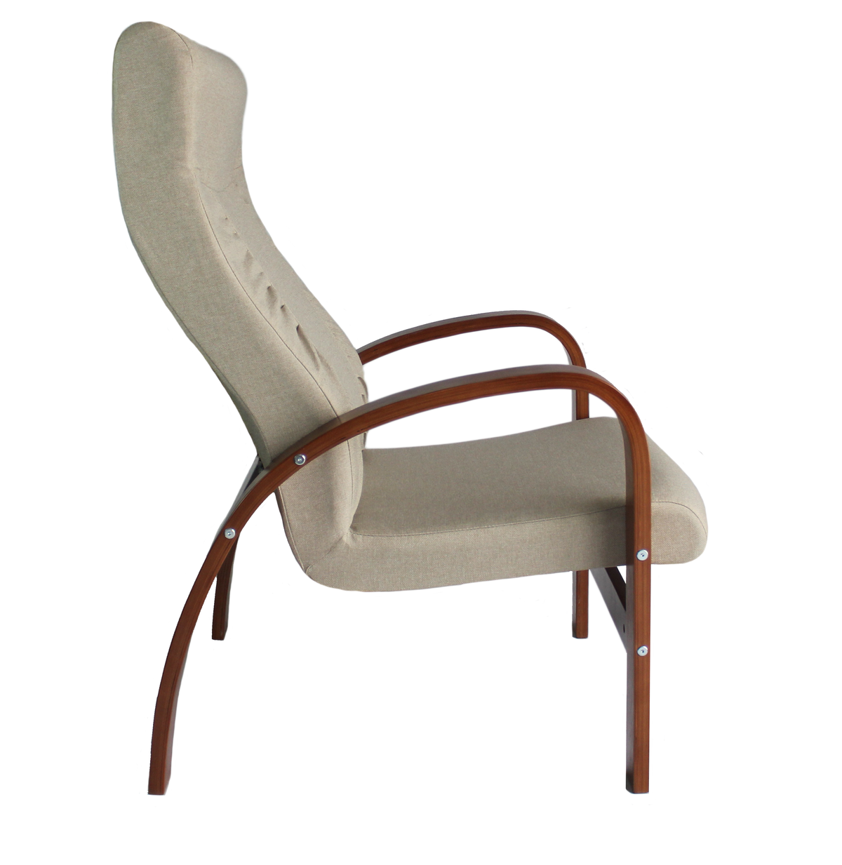 Кресло обтянуто тканью Жаккард, каркас – ГНУТОКЛЕЕНЫЙ ШПОН БЕРЕЗЫ.