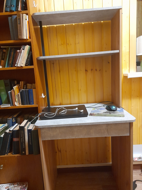 Удобная малогабаритная модель подойдёт людям, у которых не так много свободного пространства в квартире для рабочего места или владельцам ноутбуков.