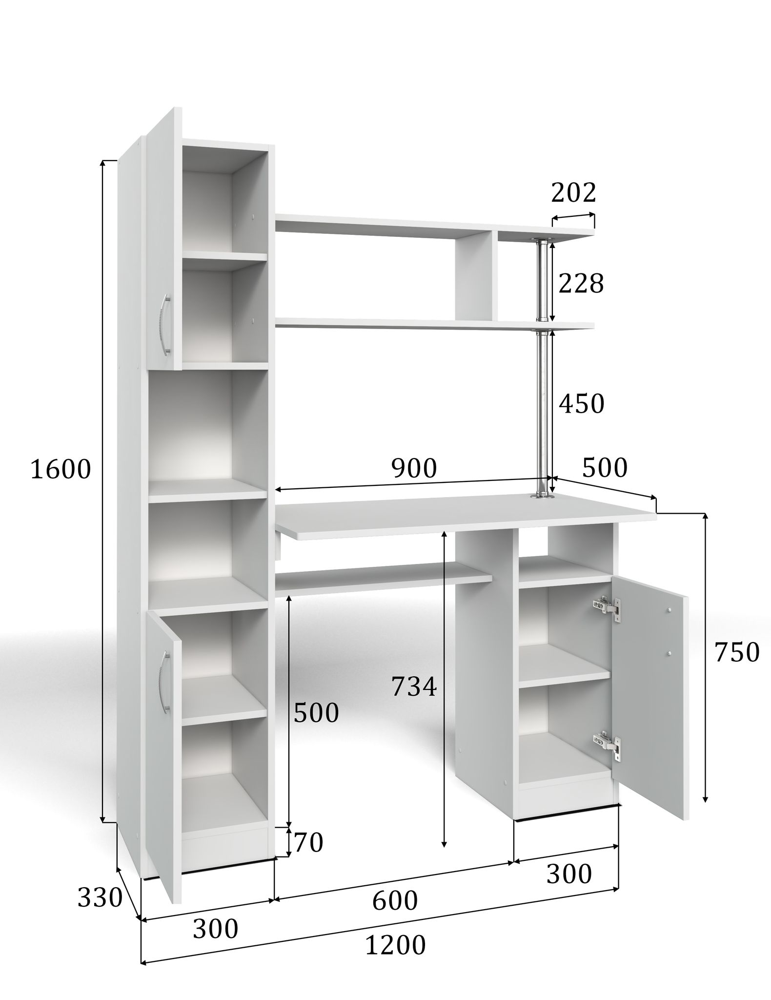У стола есть удобный вместительный пенал. В правой части за дверцей расположена одна полка.