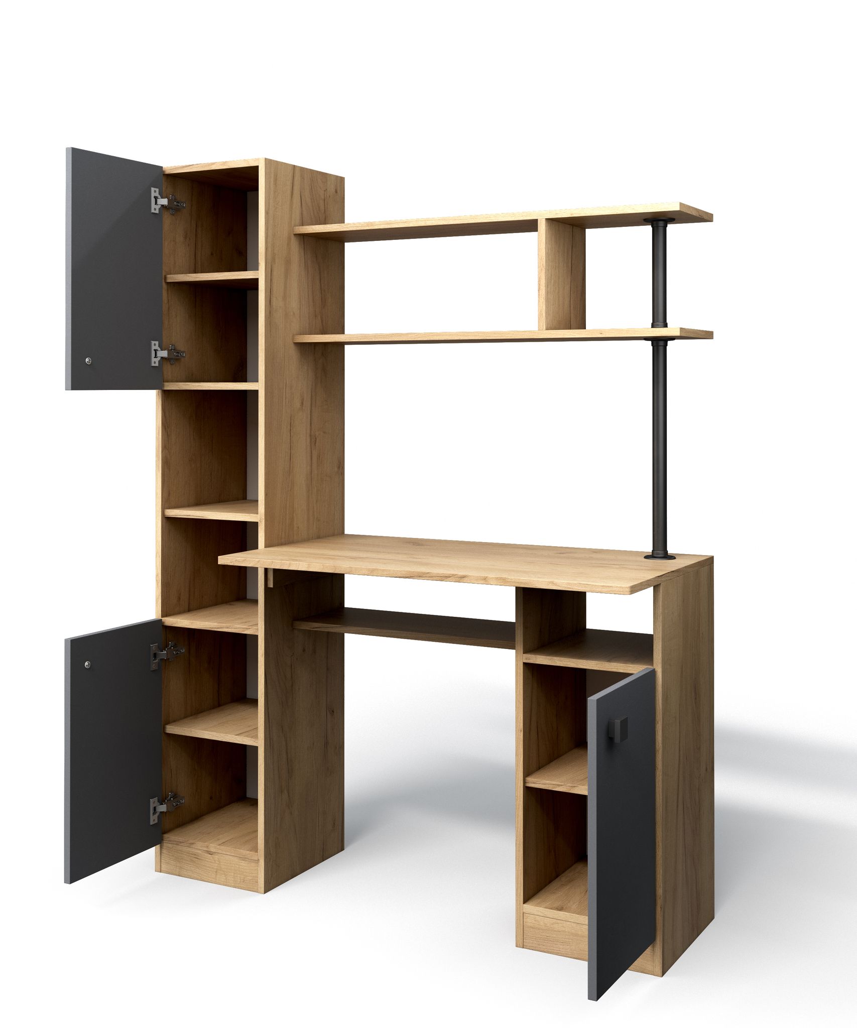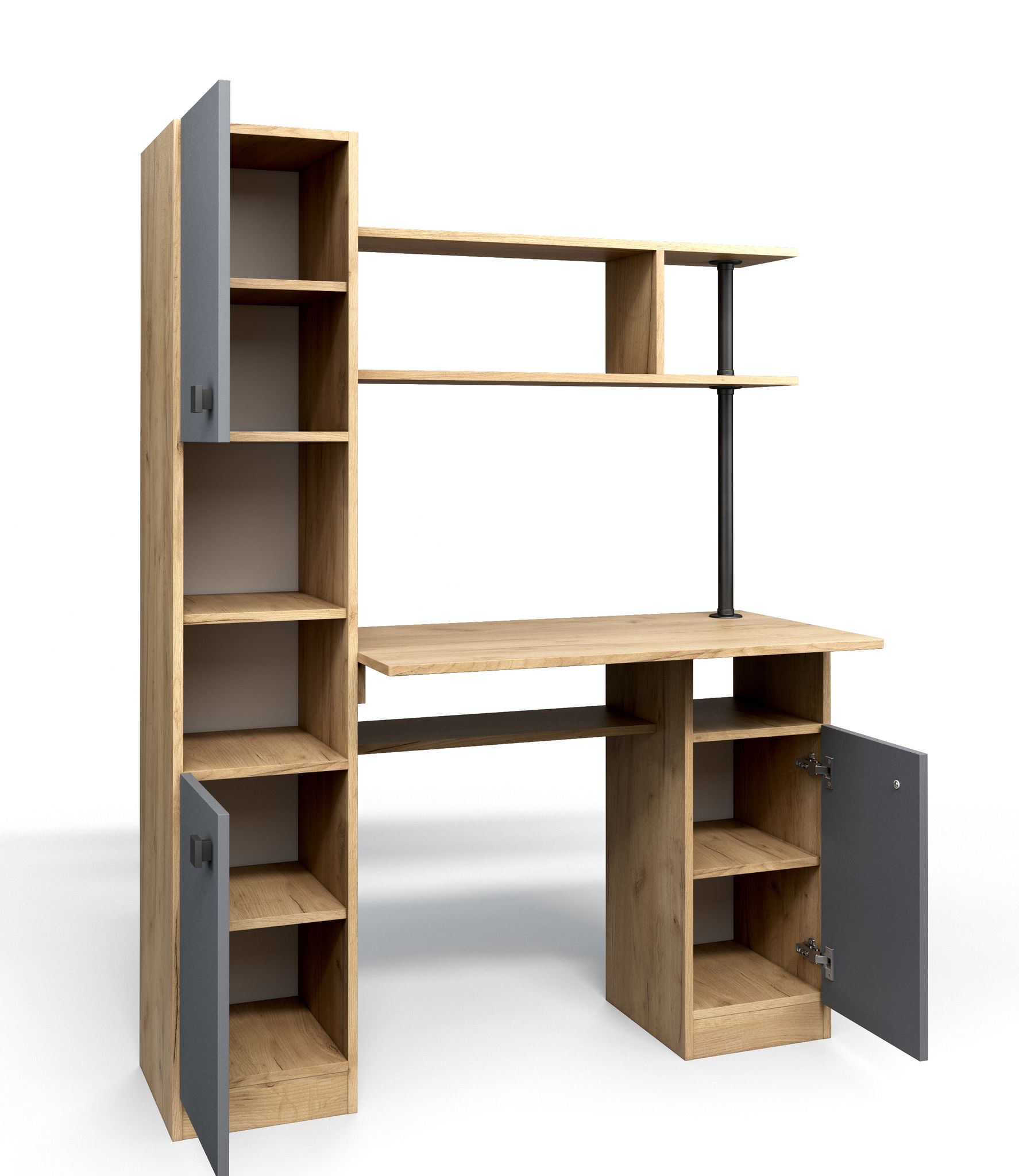 У стола есть удобный вместительный пенал. В правой части за дверцей расположена одна полка.