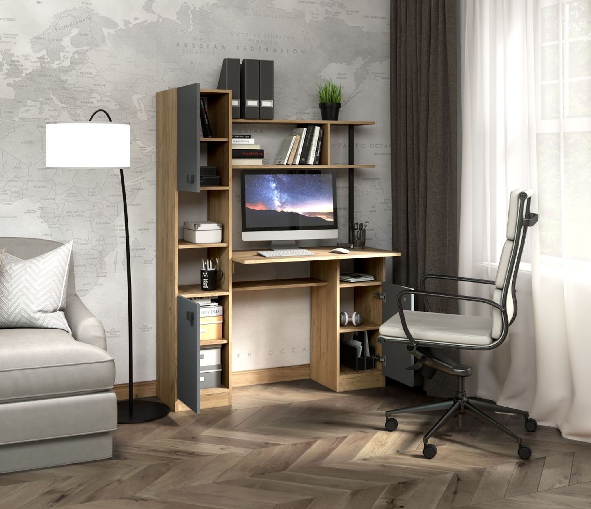 Функциональный и простой стол подойдет для работы или учебы.