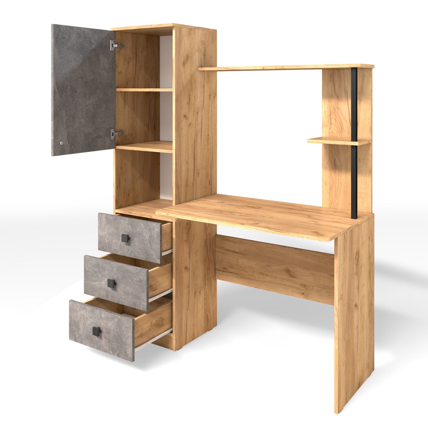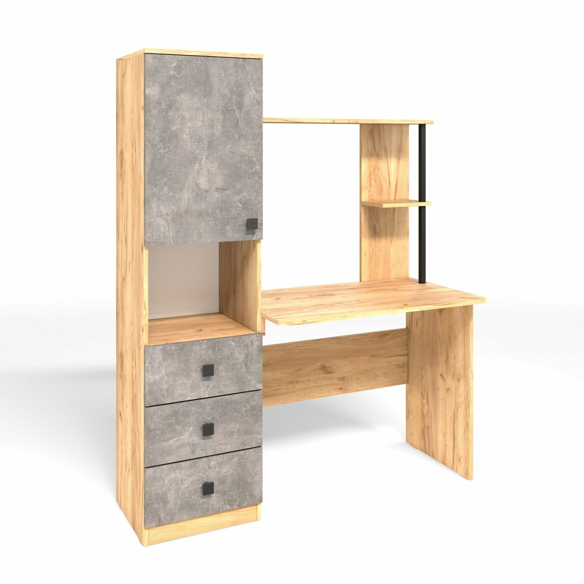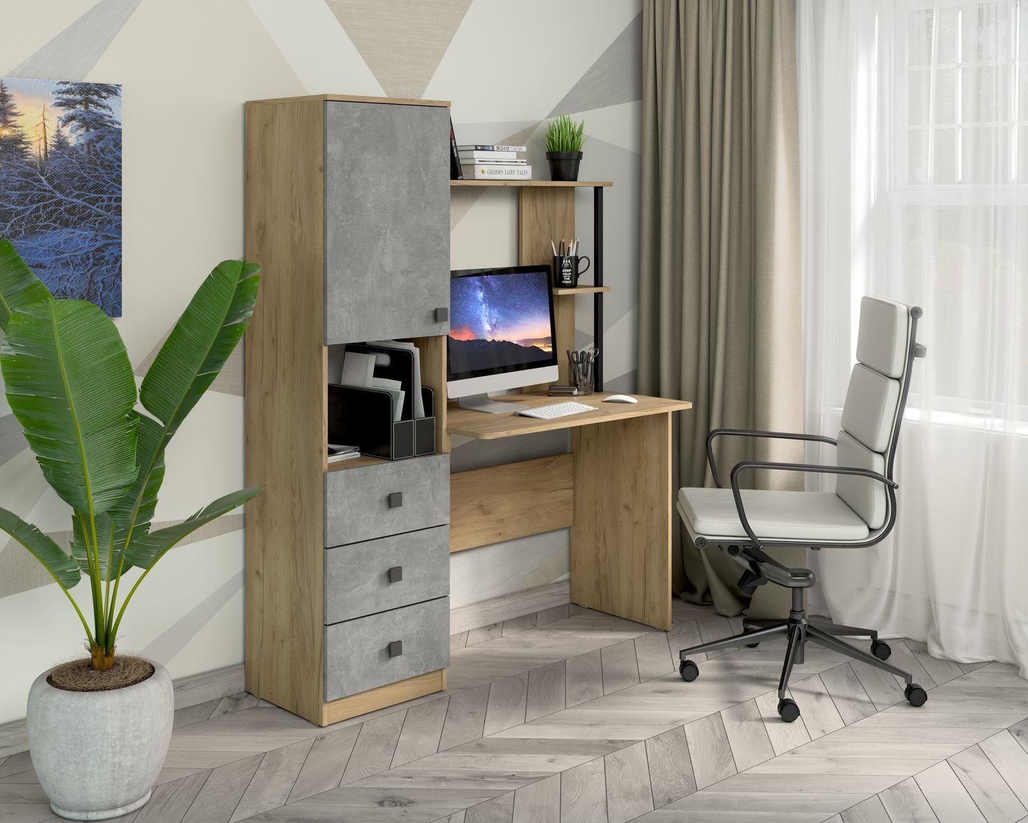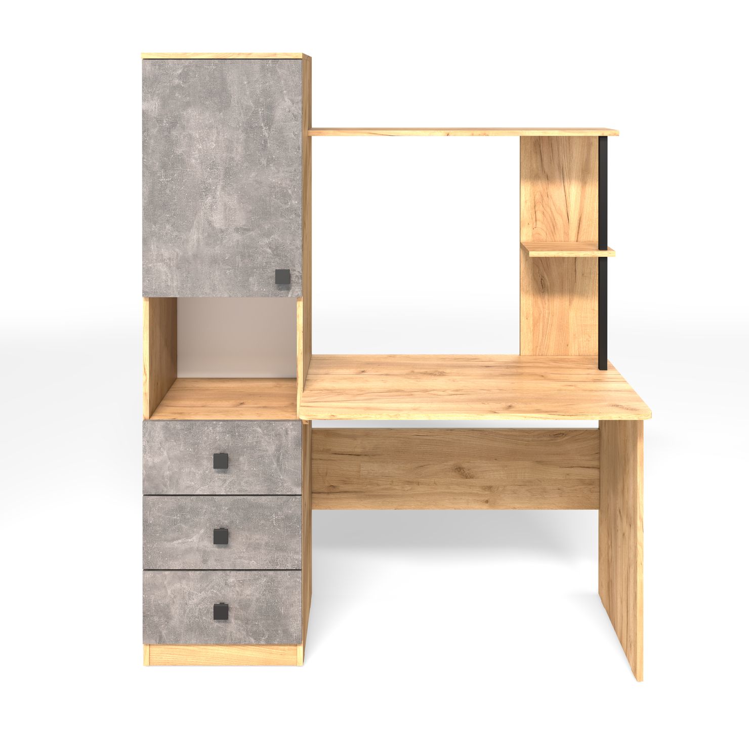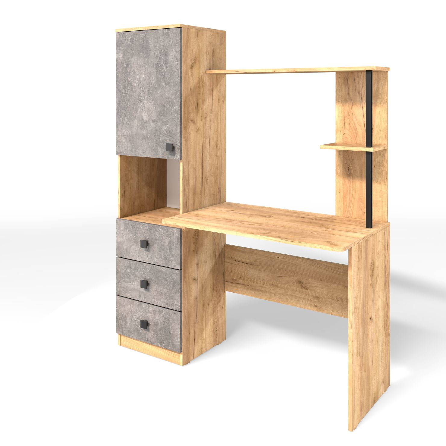 У стола есть удобный вместительный пенал. В верхней части за дверцей расположена одна полка. В нижней части выдвижные ящики.