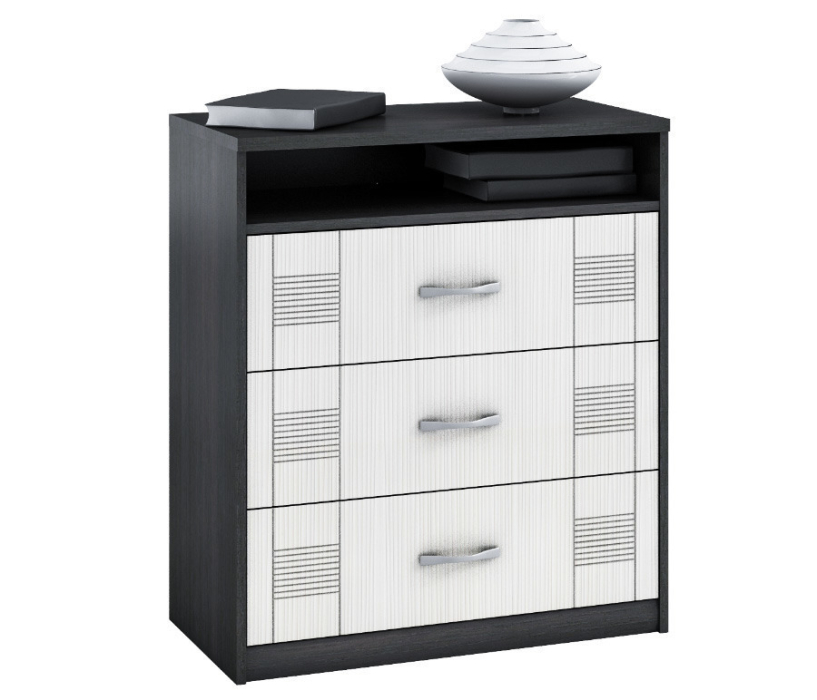 Три просторных выдвижных ящика идеальны для хранения постельного белья, полотенец, одежды, тогда как полка над ними хорошо справится с размещением книг, документов и всевозможных мелочей. На самом комоде будут отлично смотреться цветы и различные декоративные элементы.