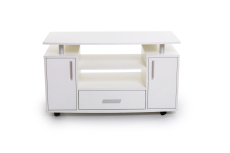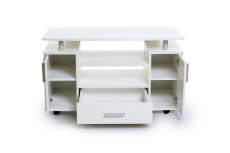 Тумба функциональная и очень удобная, благодаря наличию в ней открытых и закрытых полок, а также выдвижного вместительного ящика.