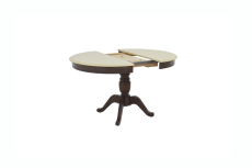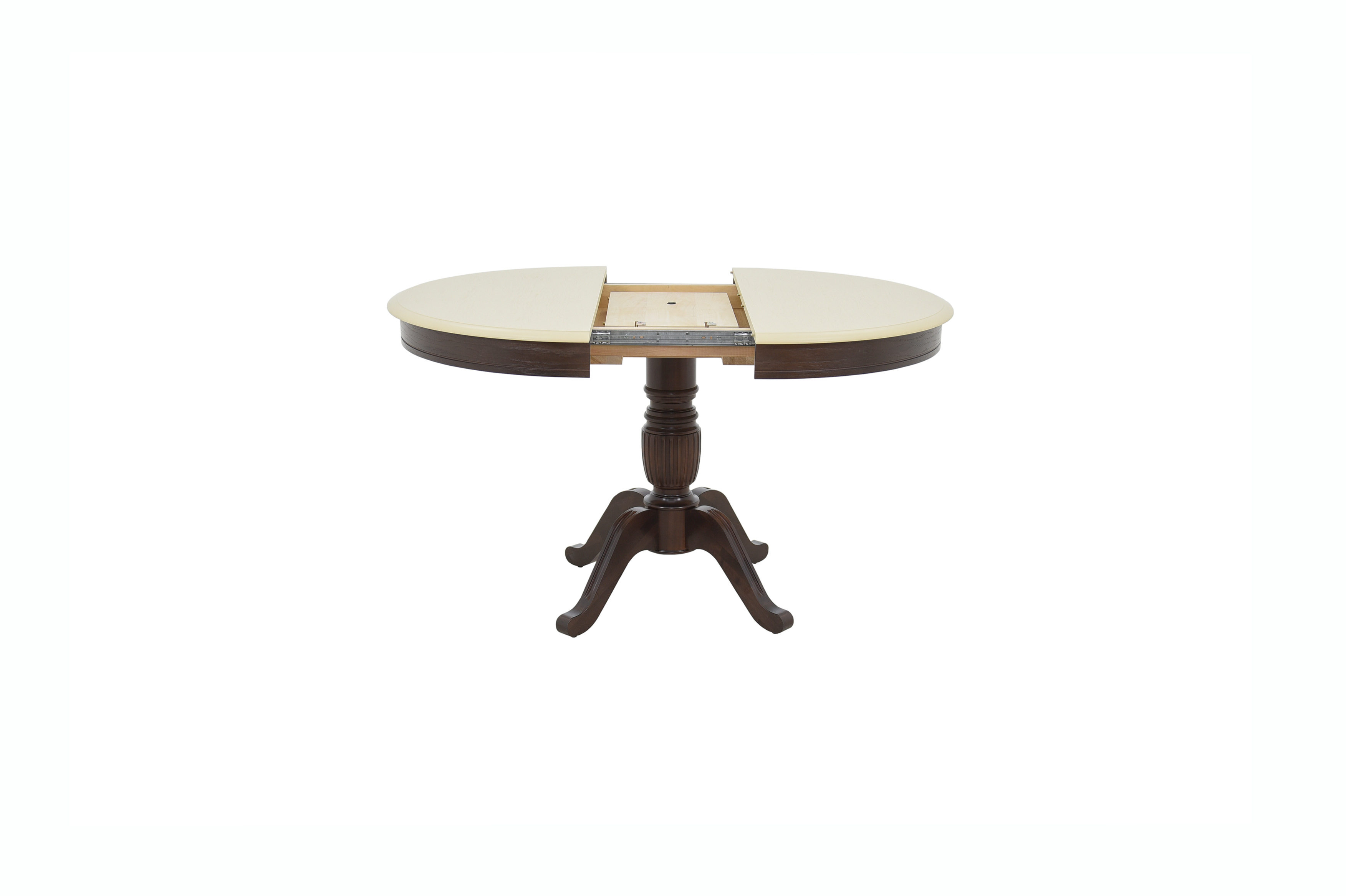 Столешница располагается на одной массивной резной опоре, оснащена специальной вставкой, благодаря которой длина стола увеличивается на 30 см. Вставка хранится внутри столешницы.